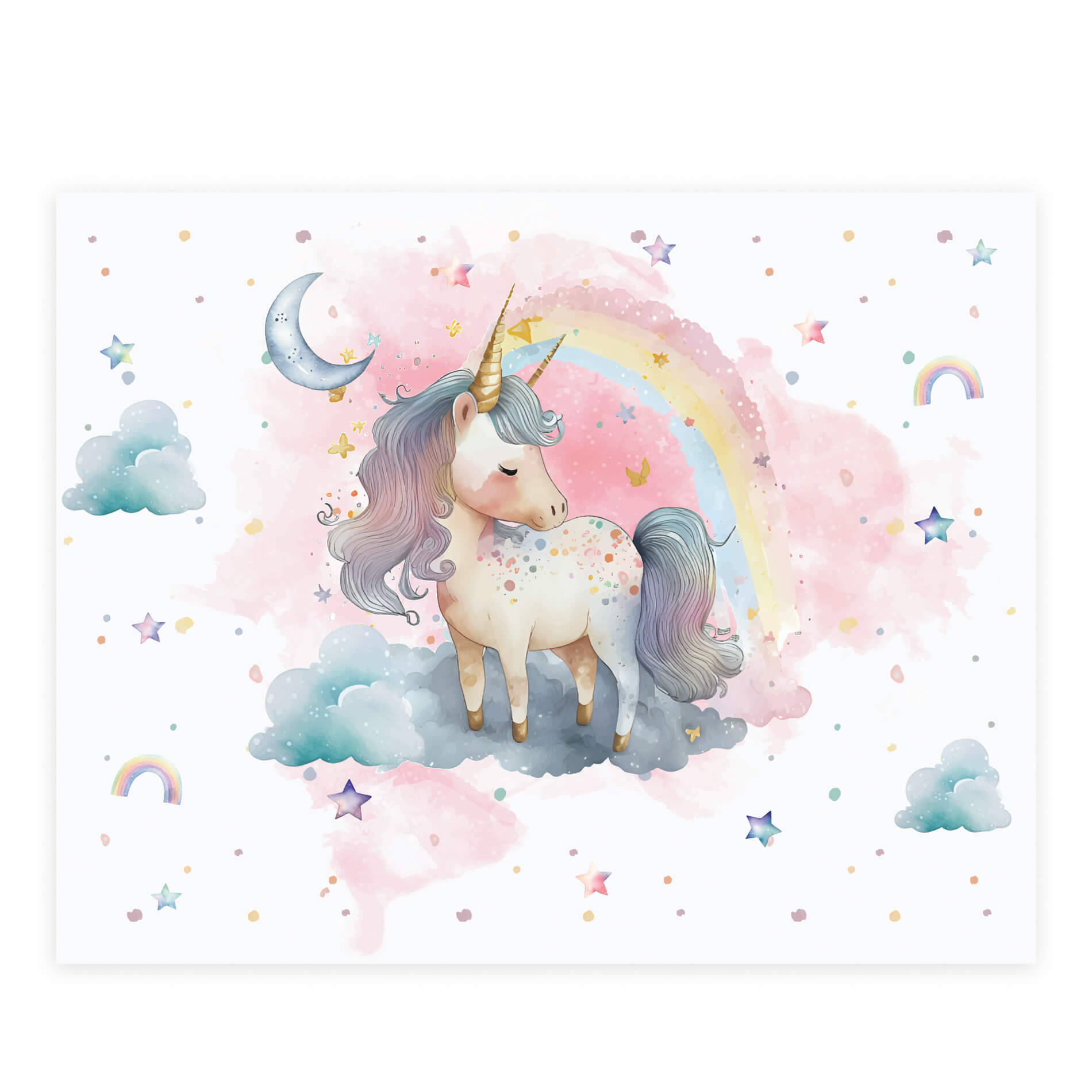 - Design exclusivo com temática de unicórnio em aquarela, ideal para quartos infantis.