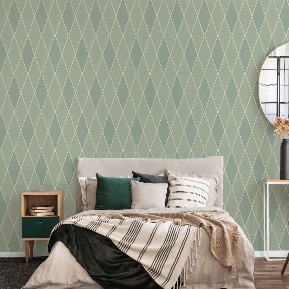 Características do Papel de Parede Losangos Vintage Verde Acinzentado: