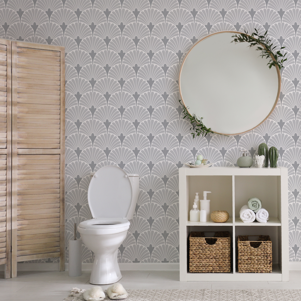 Papel de Parede Escamas Vintage Cinza e Branco 2,7×0,57cm