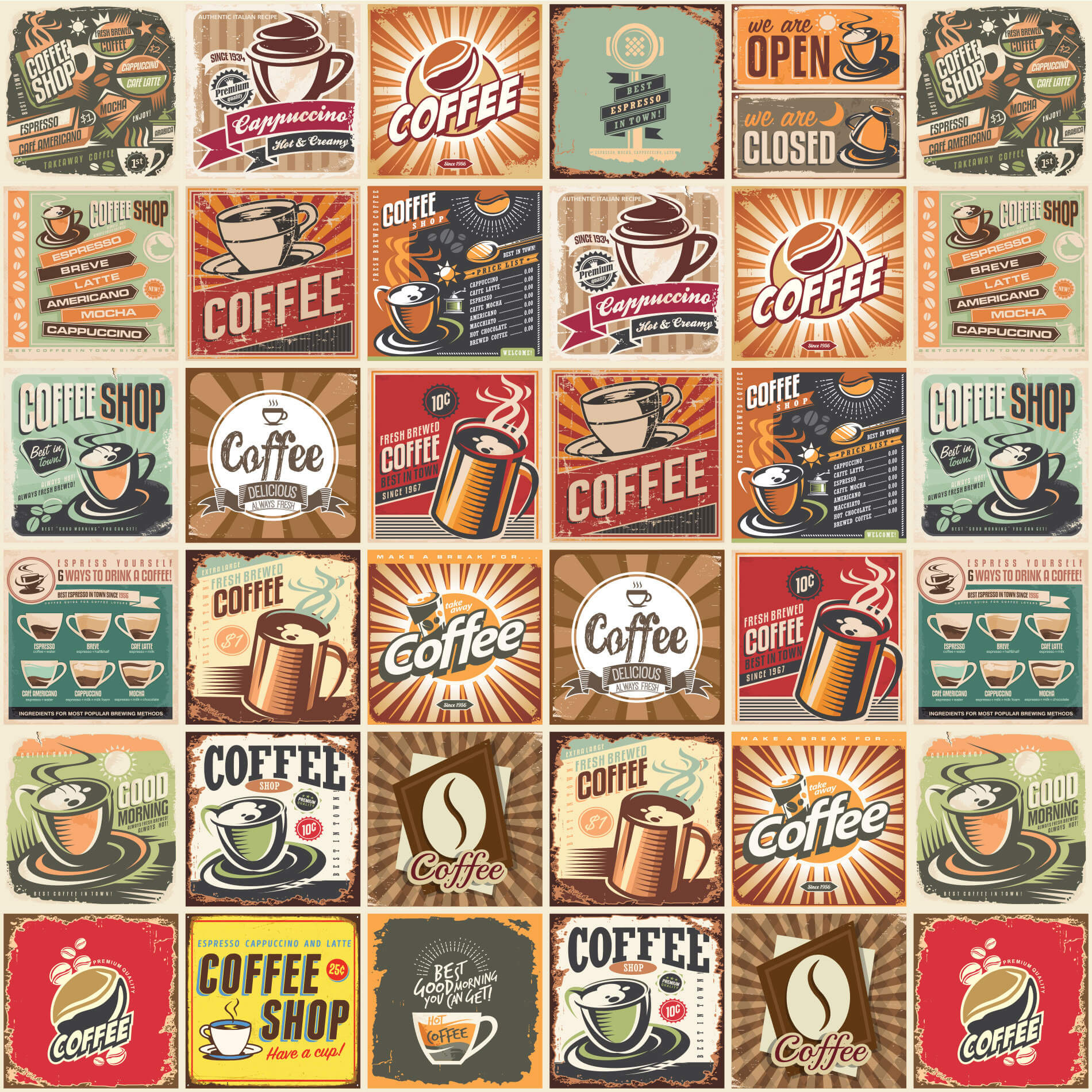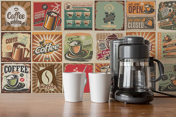 Papel Parede Vintage Café Cozinha Lanchonete Rolo 57x270cm