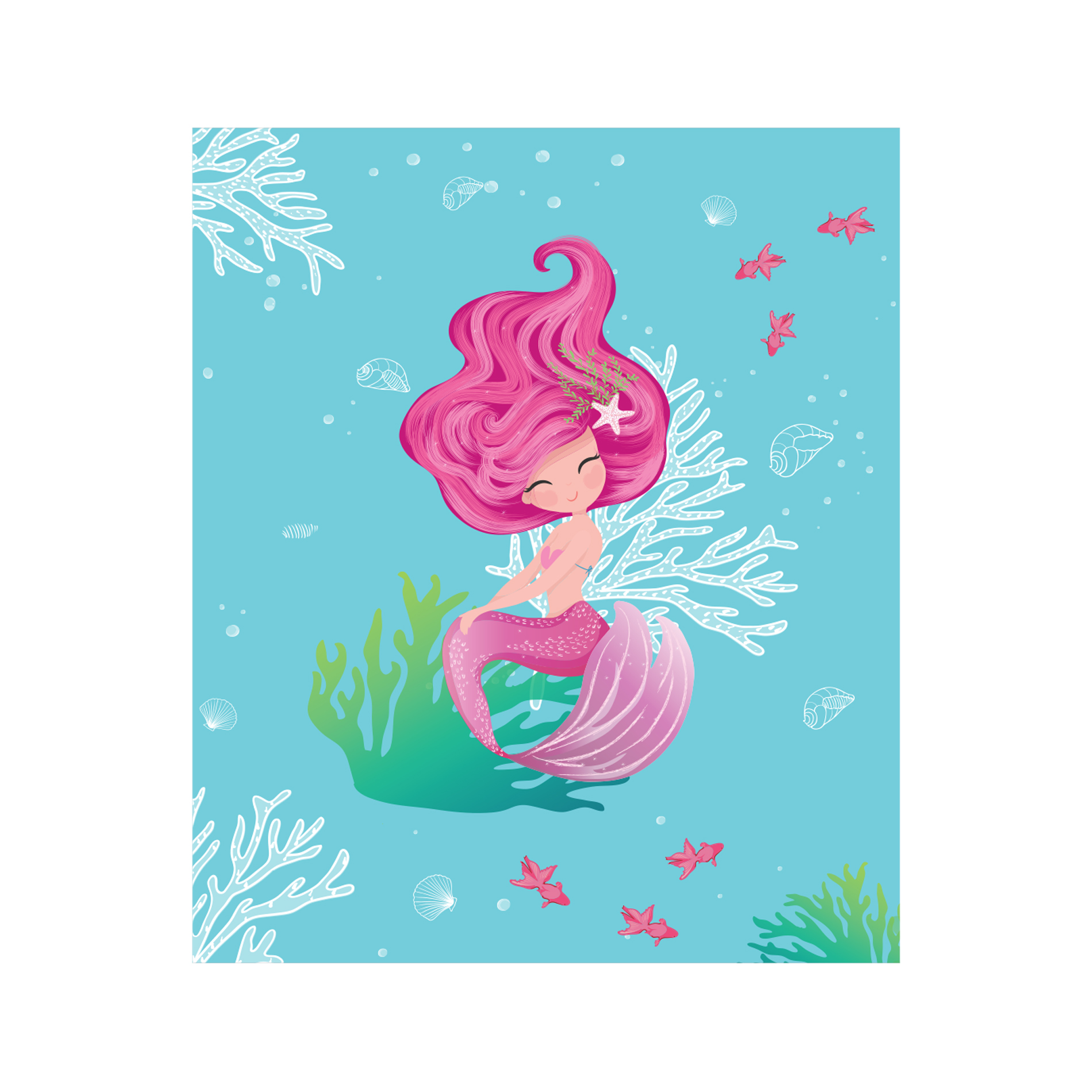 - Design lúdico e colorido pastel com tema sereia que encanta e decora o ambiente.