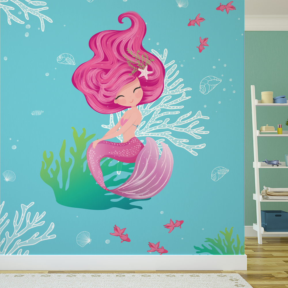 Tudo o que você precisa saber sobre Papel de Parede Sereia Rosa Fundo do Mar Quarto Infantil 6m²