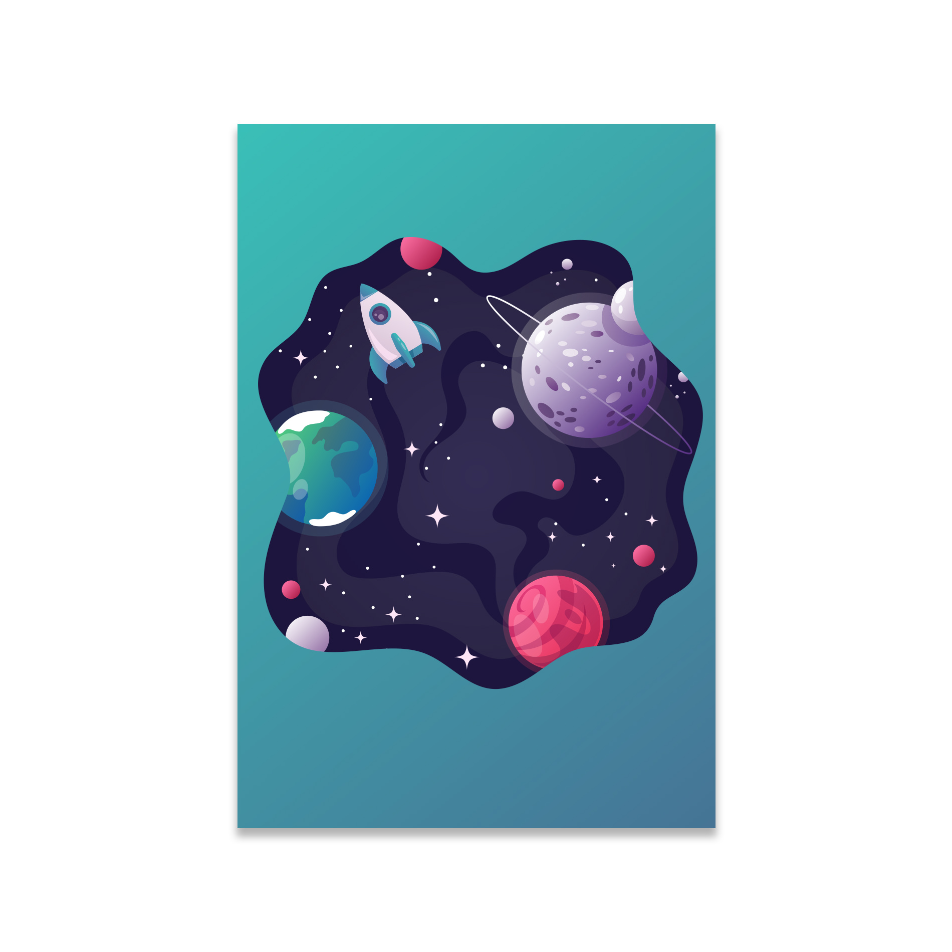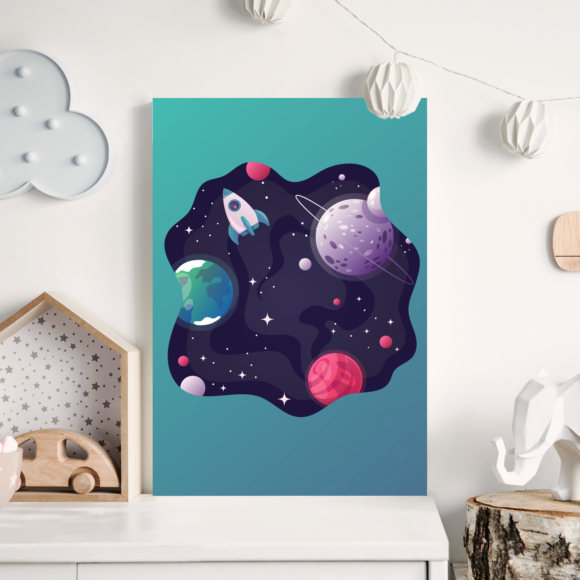 Placa Decorativa Espaço Foguetes e Planetas 30x40cm
