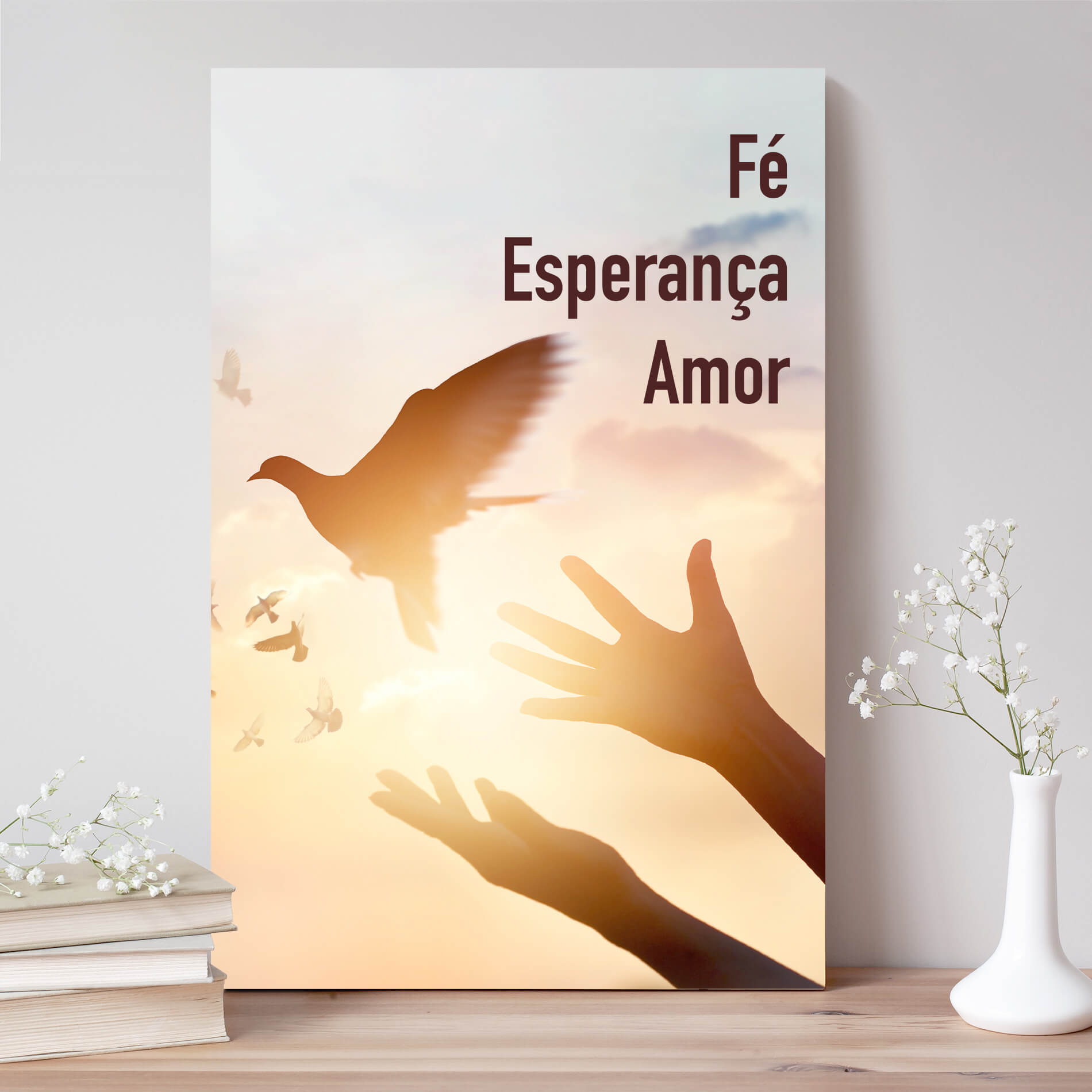 Placa Decorativa Frase Motivacional Fé Esperança Amor 40x60cm