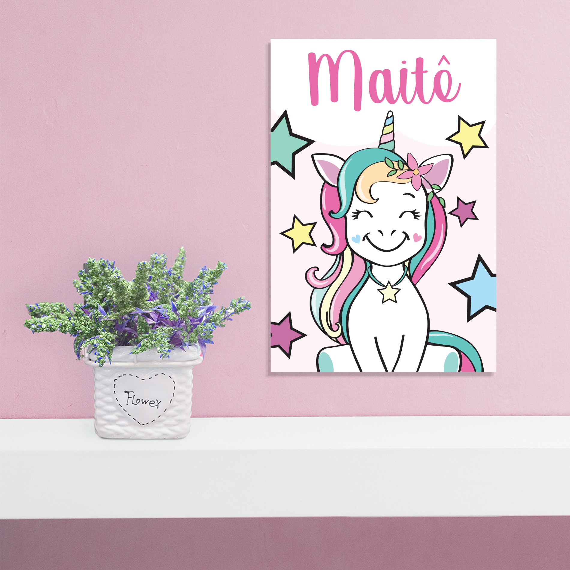 Placa Decorativa Infantil Personalizada Unicórnio Teen