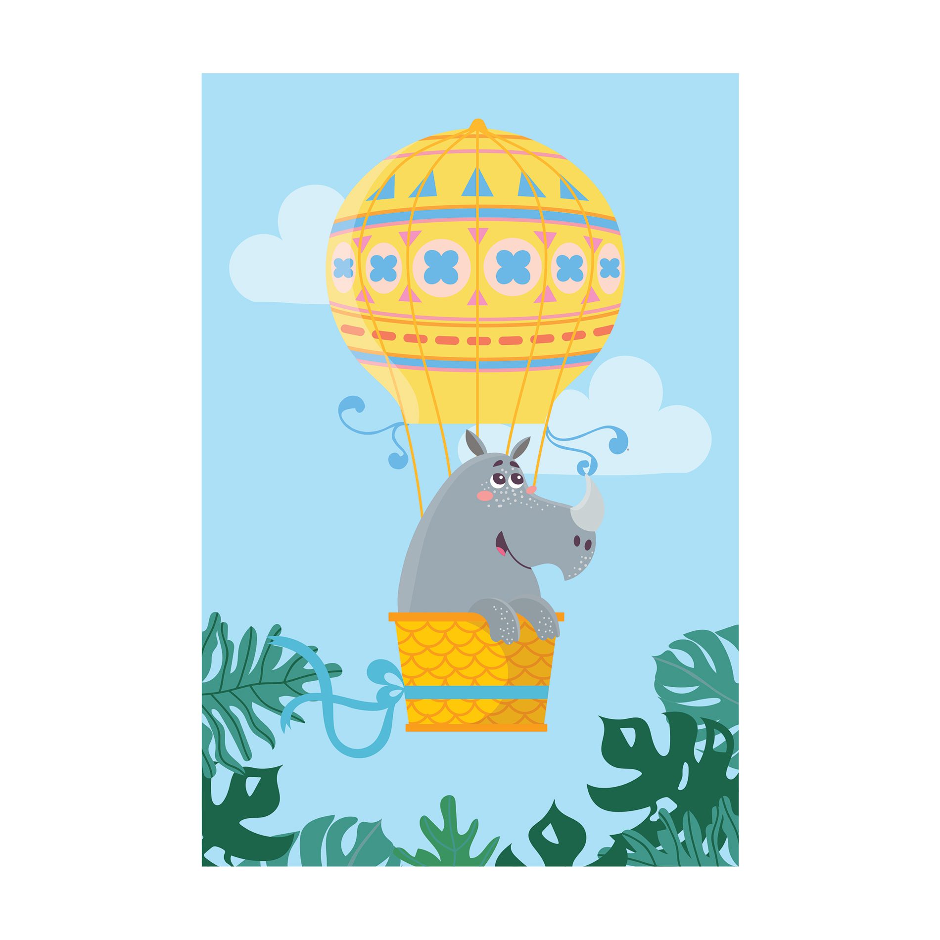 Placa Decorativa Infantil Rinoceronte e Balão 20x30cm