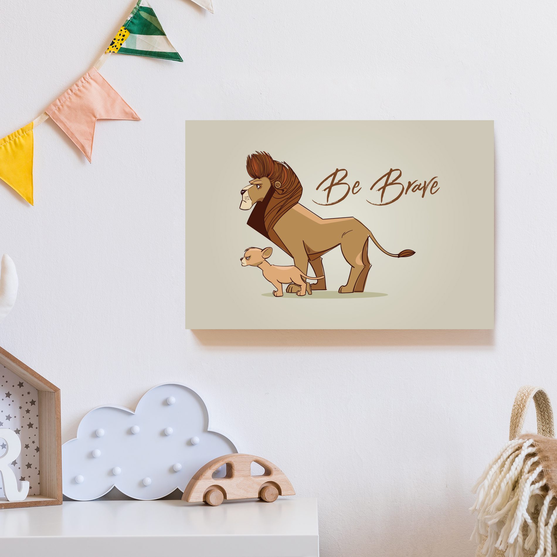 Placa Decorativa Leão Frase Infantil Be Brave 20x30cm