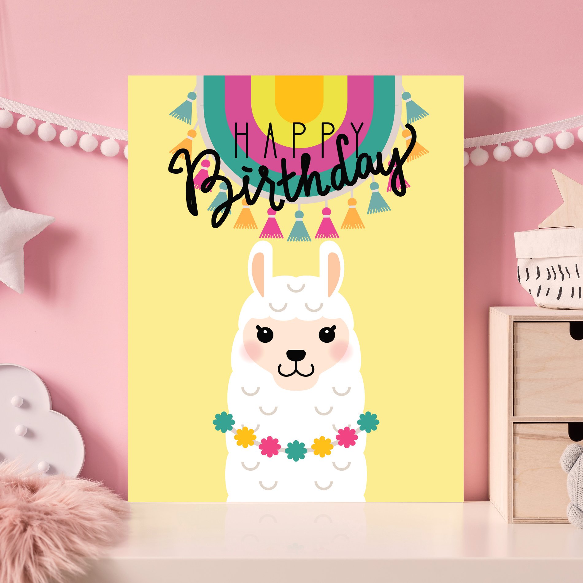 Modern,Scandinavian,Newborn,Baby,Room,With,White,Mock,Up,PosterPlaca Decorativa Lhama Happy Birthday Amarelo MDF 30x40cm