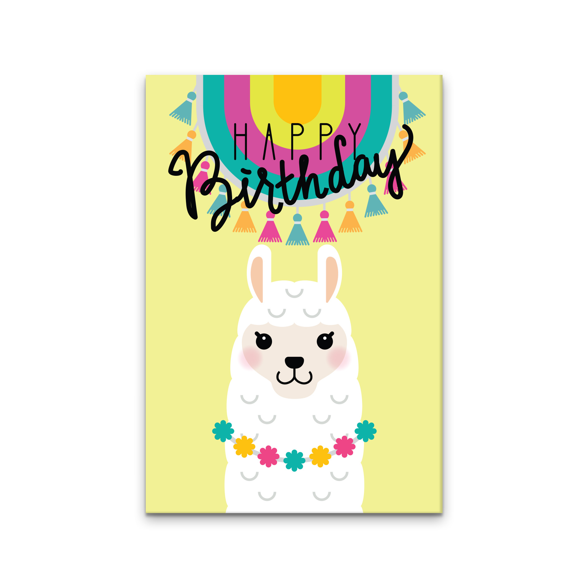 Placa Decorativa Lhama Happy Birthday Amarelo MDF 30x40cm