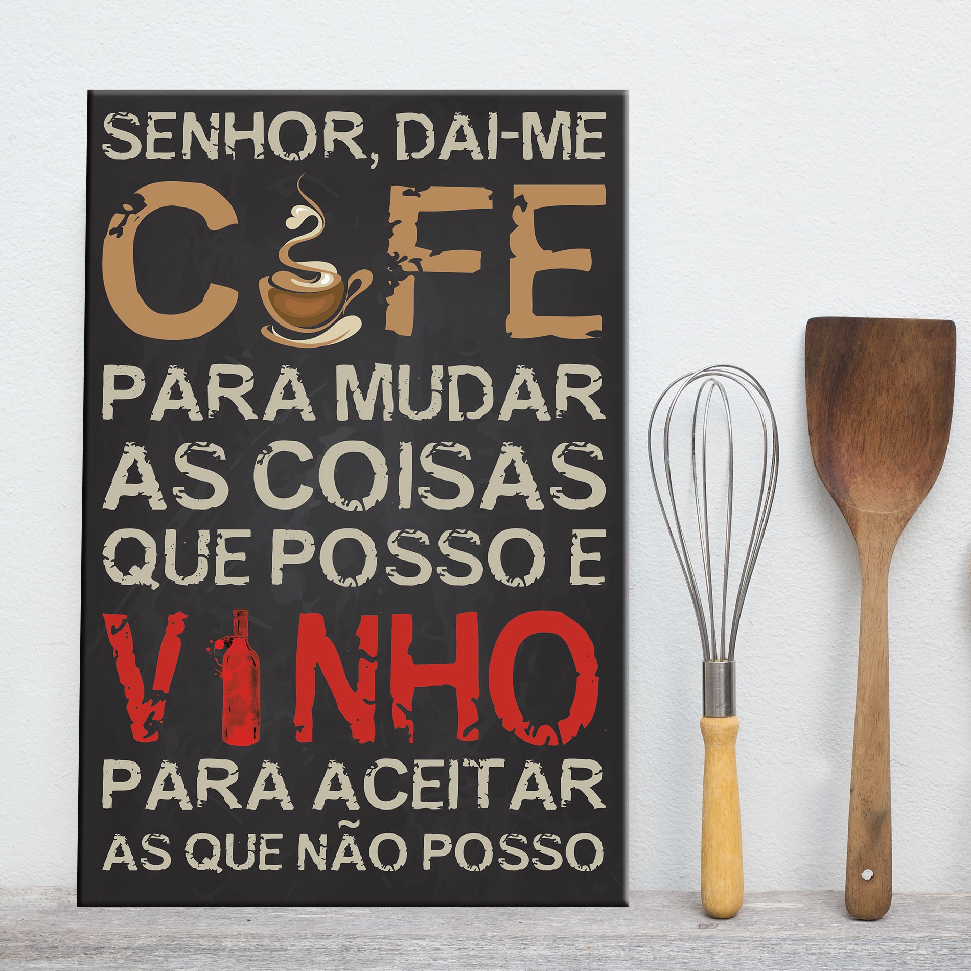 Placa Decorativa MDF Frase Vinho e Café 40×60