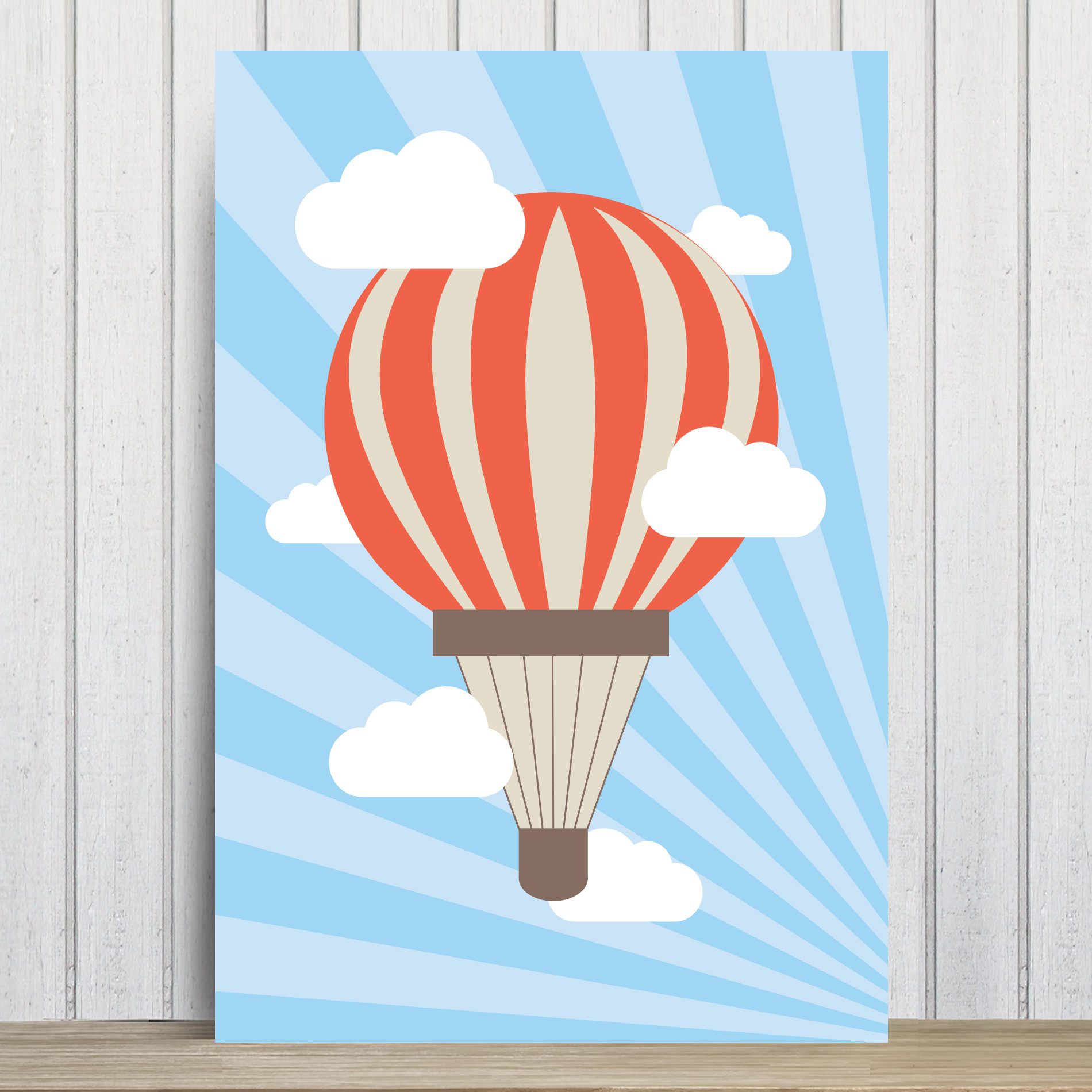 Placa Decorativa MDF Infantil Balão e Nuvens 30x40cm