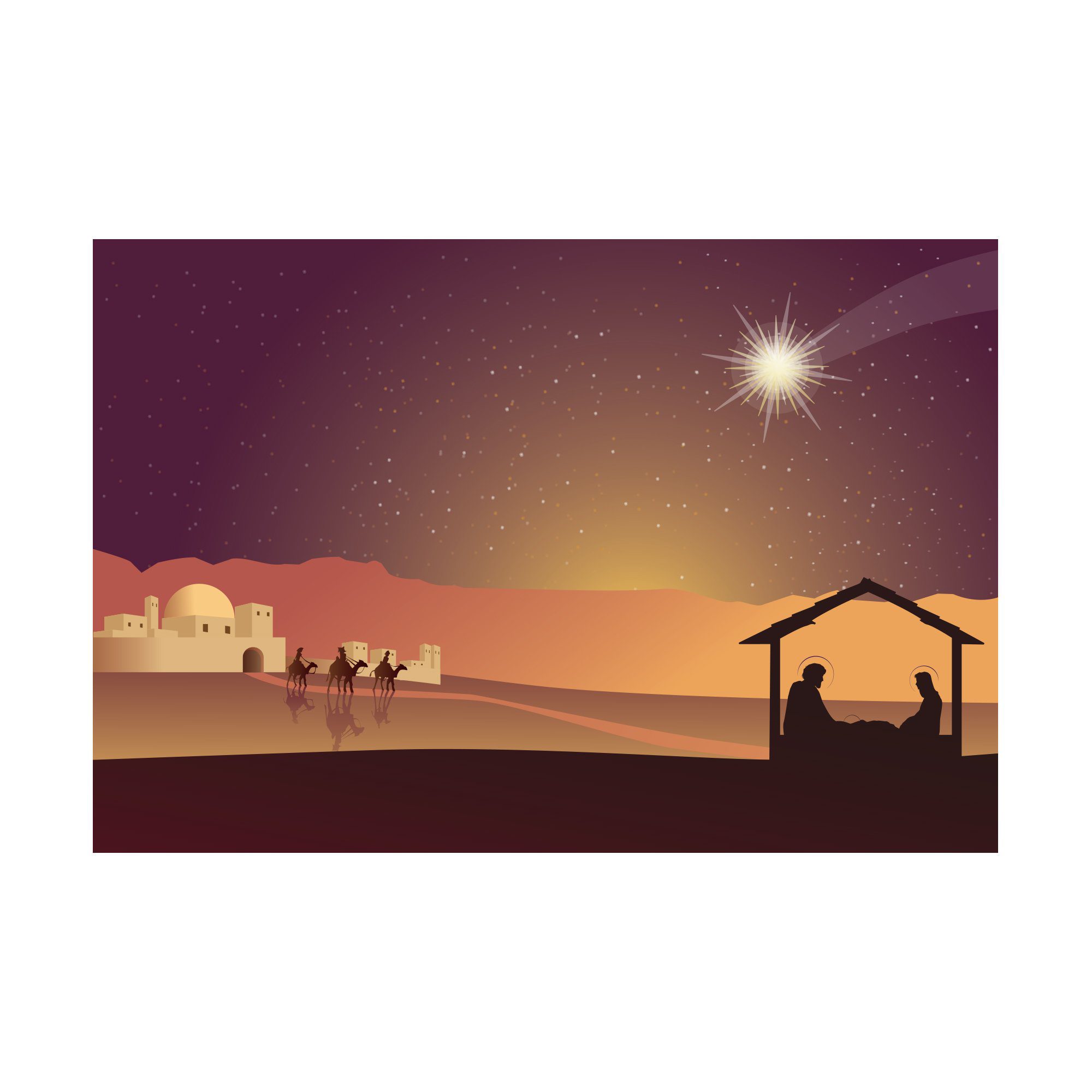 • Tipo de produto: Placa decorativa em MDF com ilustração do presépio no deserto, ideal para complementar a decoração natalina da sua casa.