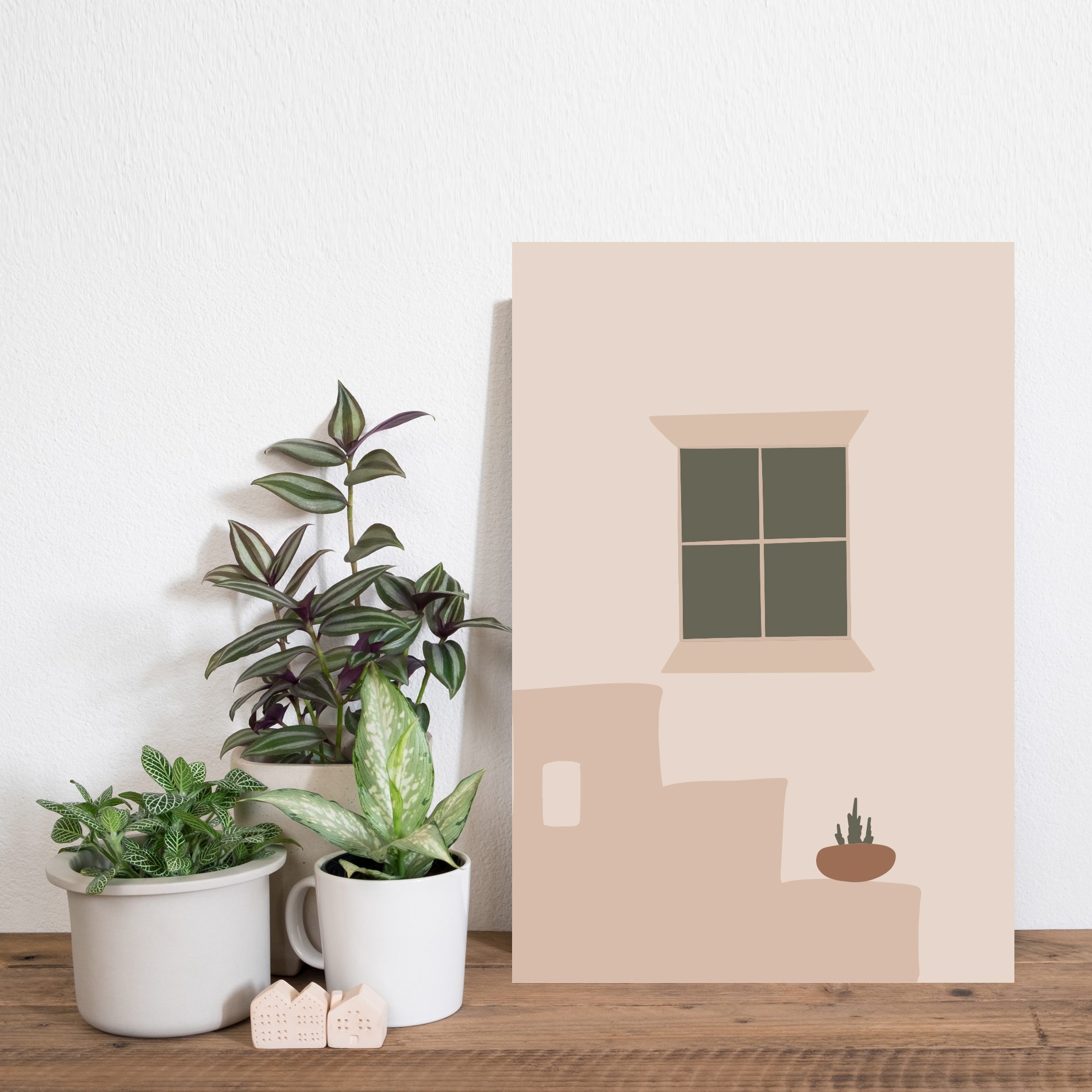 Placa Decorativa Sala Cozinha Janela Planta Abstrata 20x30cm MDF