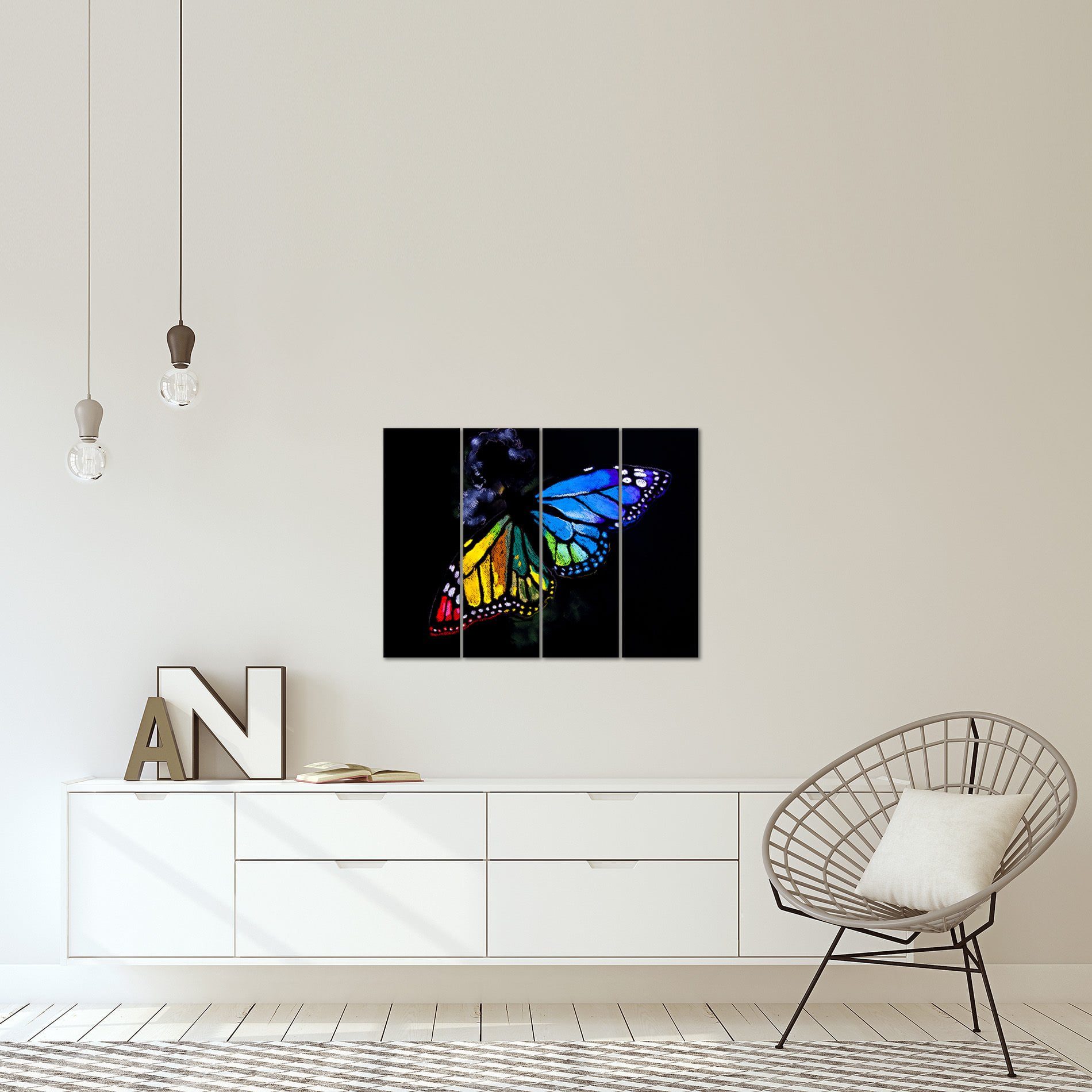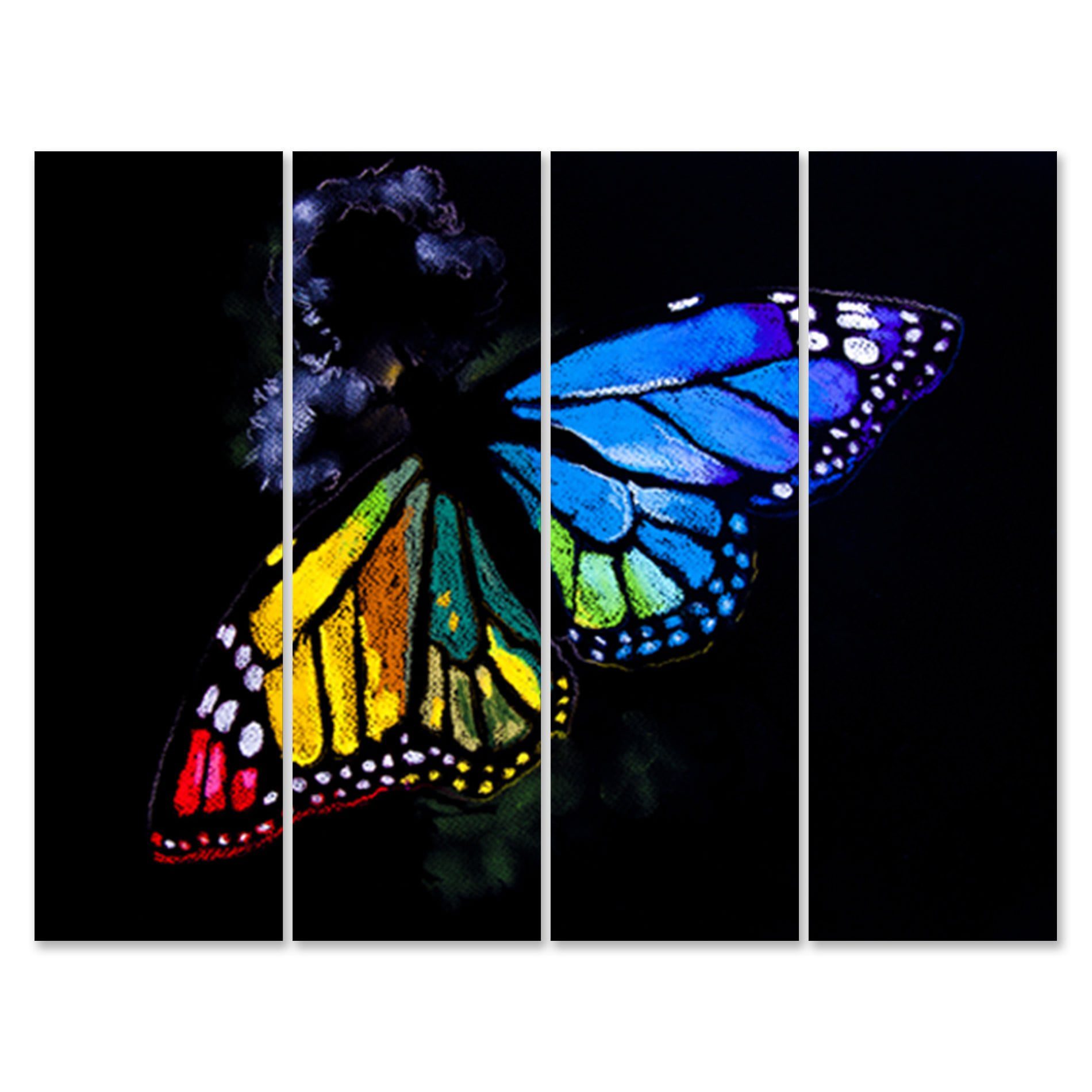 • Tipo de Produto: Placa decorativa em MDF composta por 4 placas retangulares, formando uma elegante imagem de uma borboleta colorida.