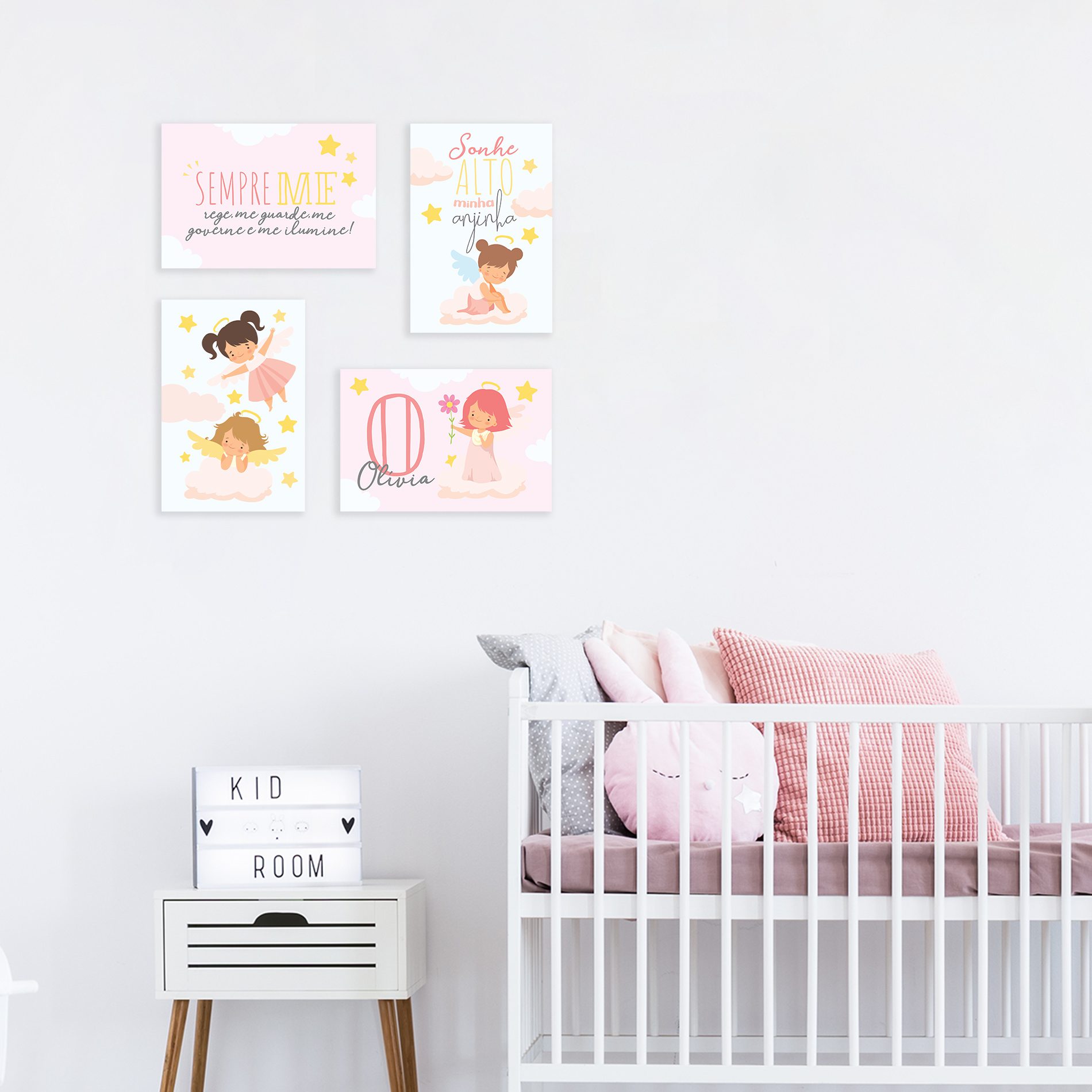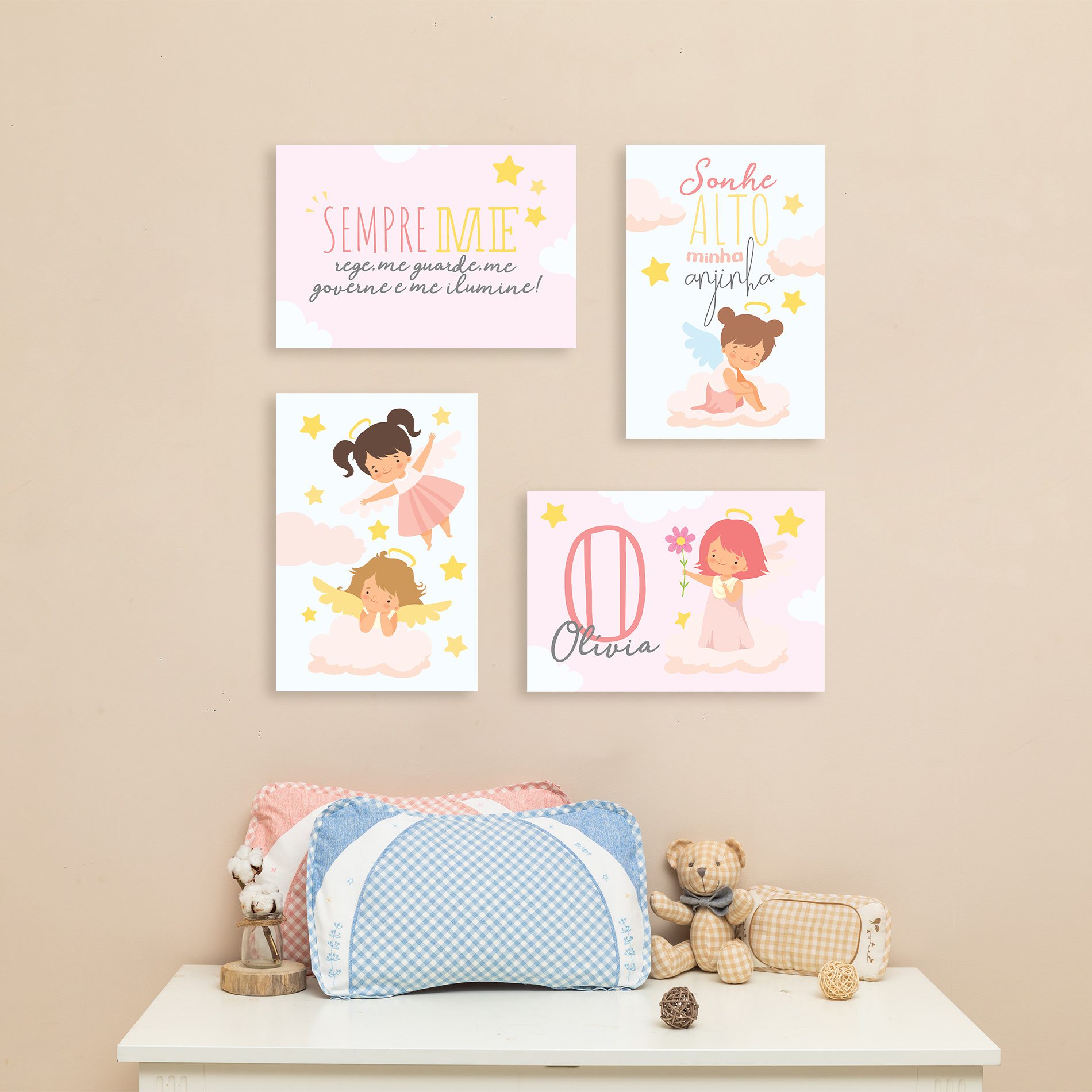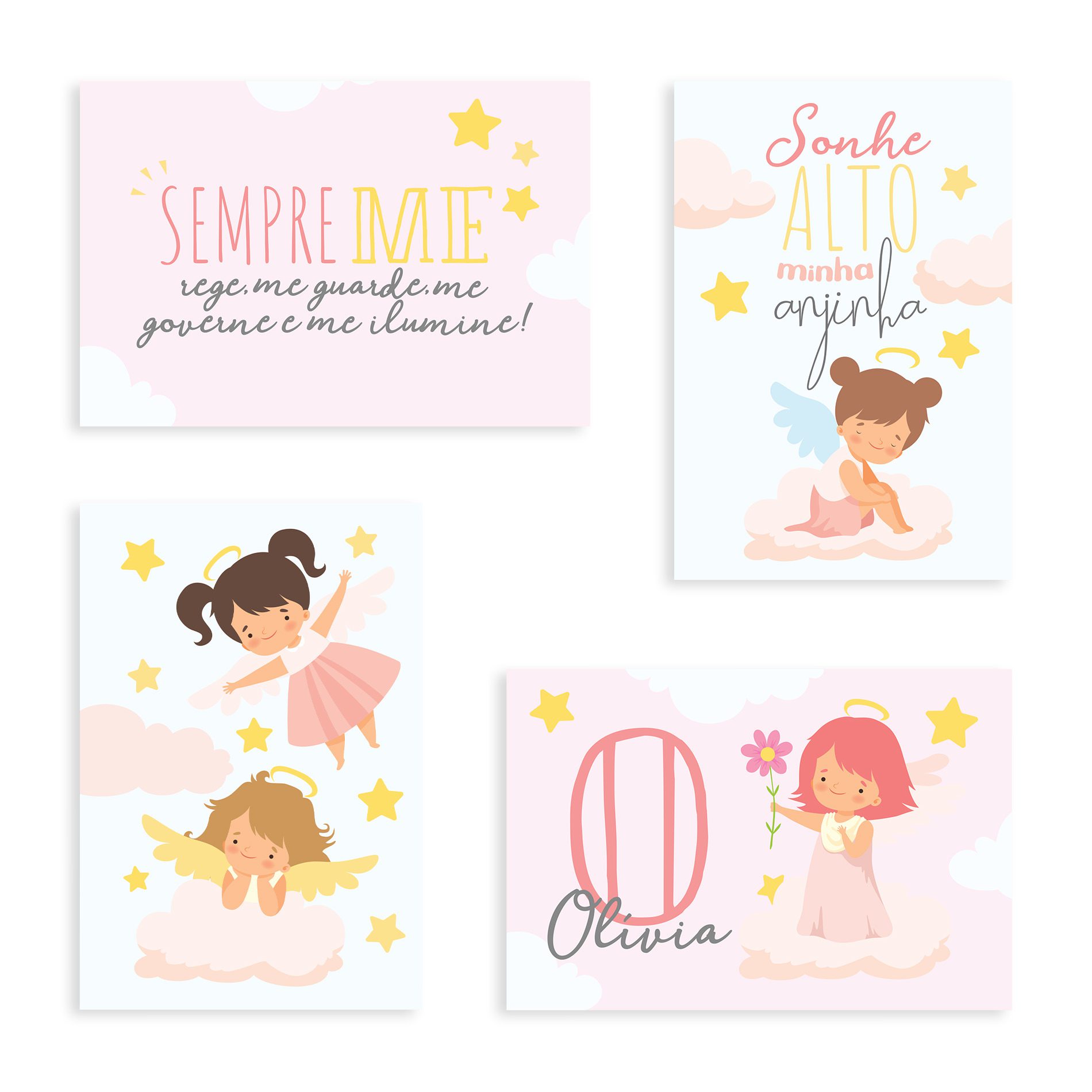 Placas Decorativas Nome Anjo da Guarda Menina 30x40cm Kit4un