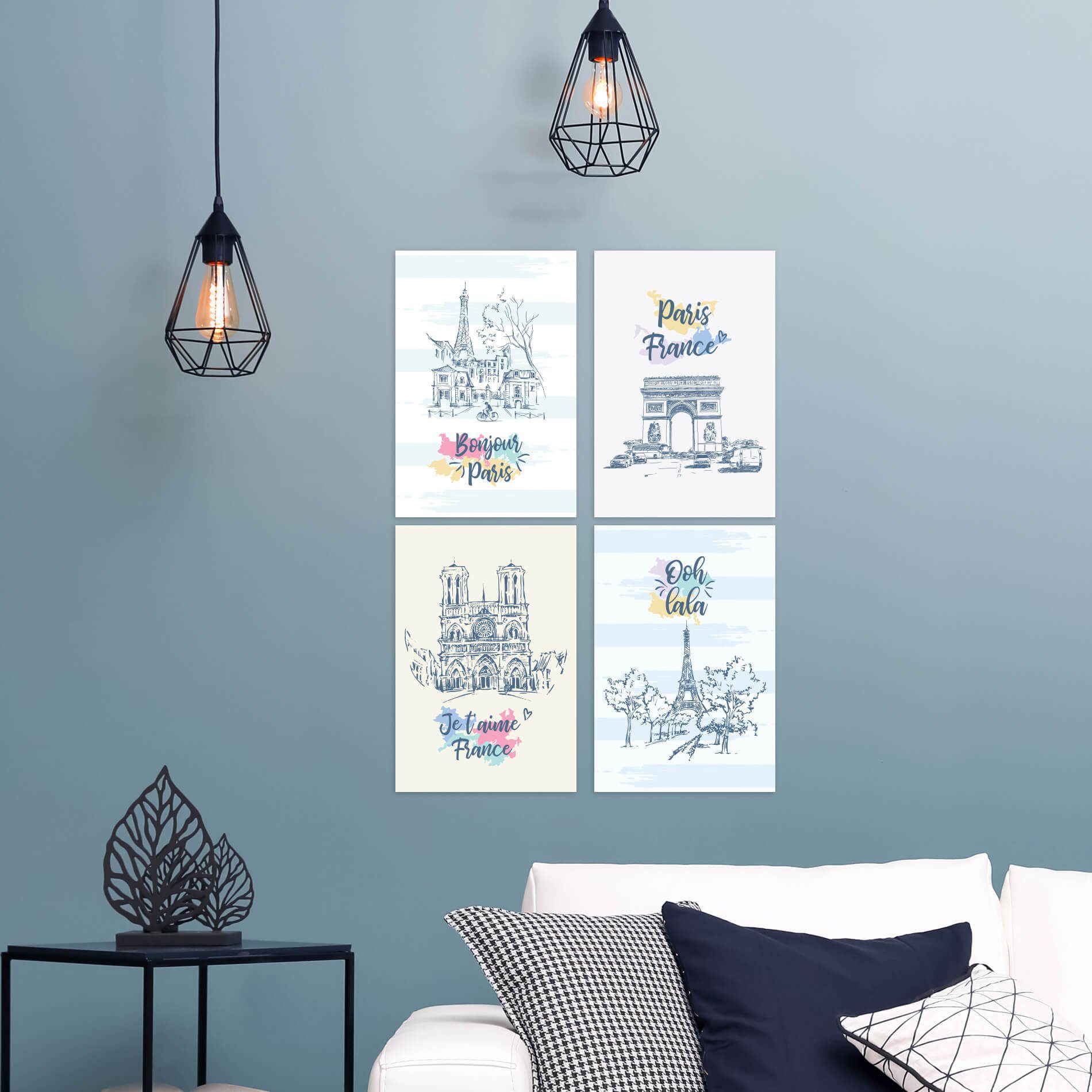 Placas Decorativas Paris Ilustrada para Sala 30×40 Kit 4un