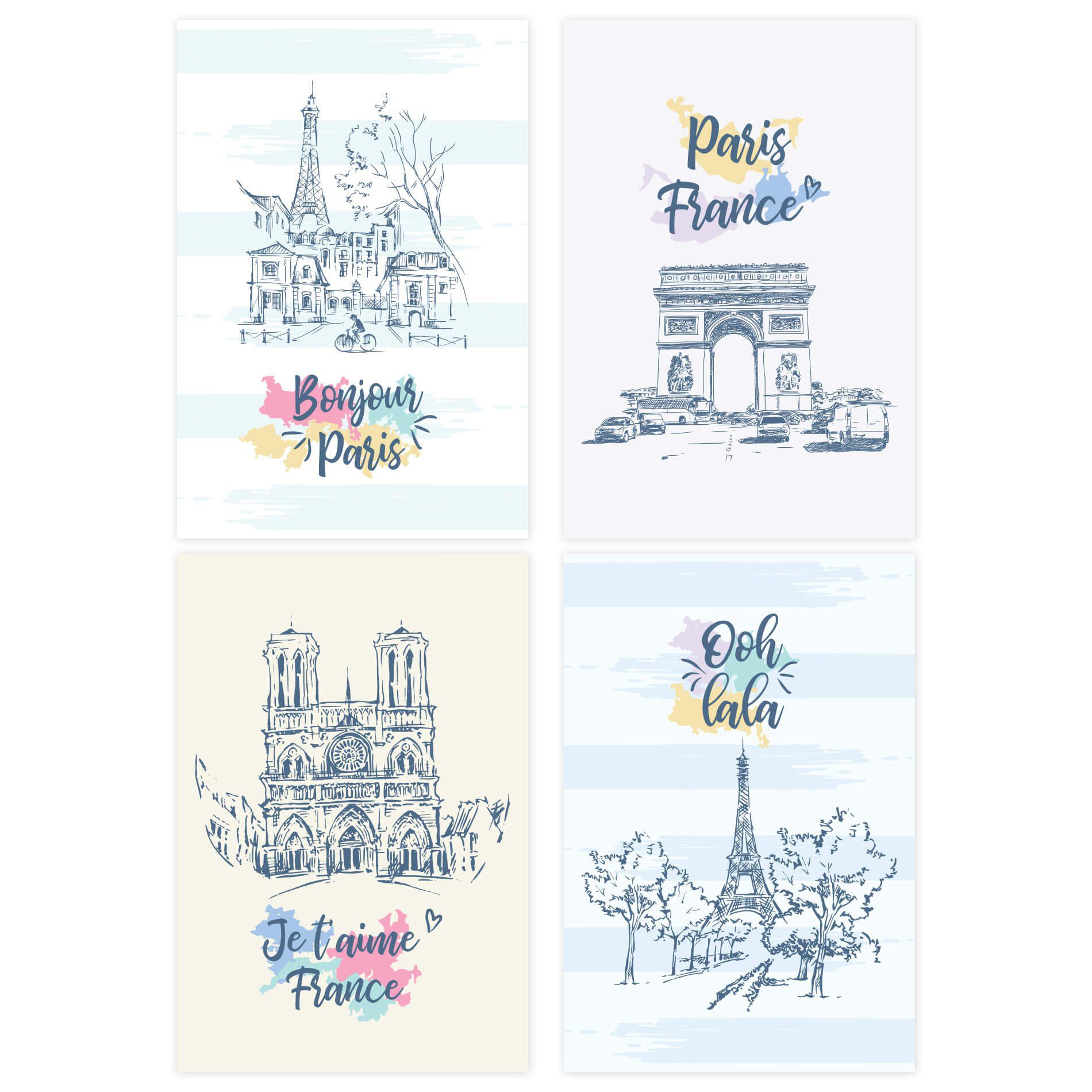 Placas Decorativas Paris Ilustrada para SalaPlacas Decorativas Paris Ilustrada para Sala 30×40 Kit 4un