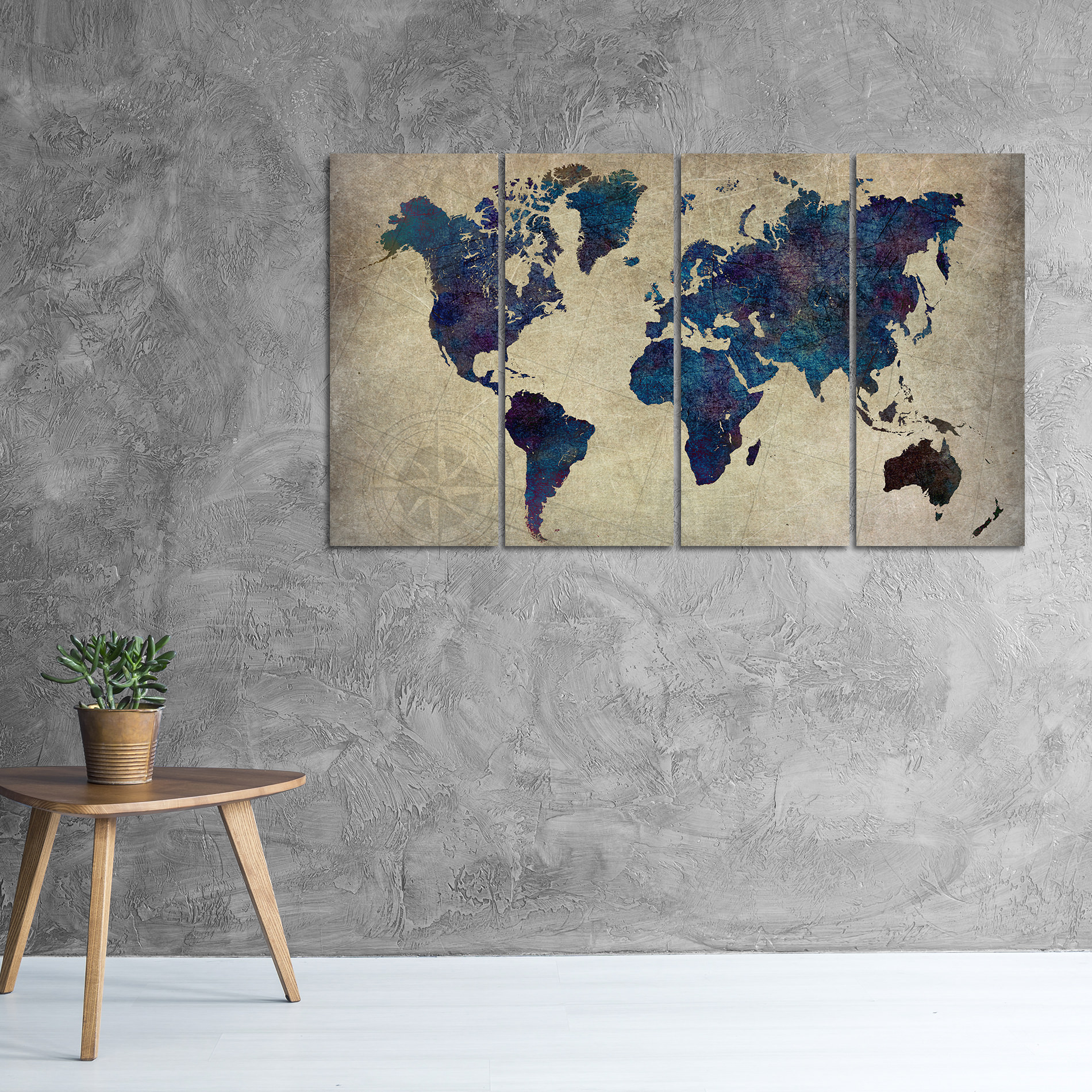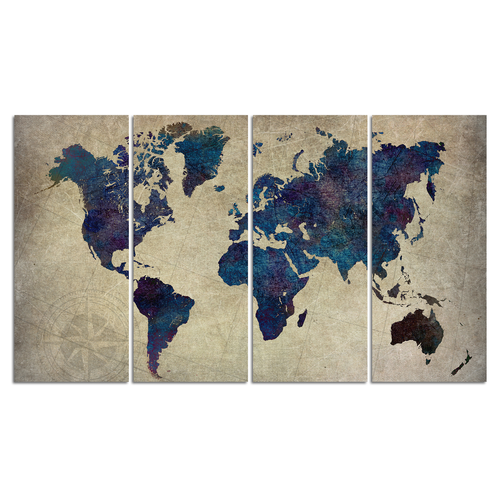 Placas Decorativas Vintage Mapa Mundi em MDF Kit 4 Placas