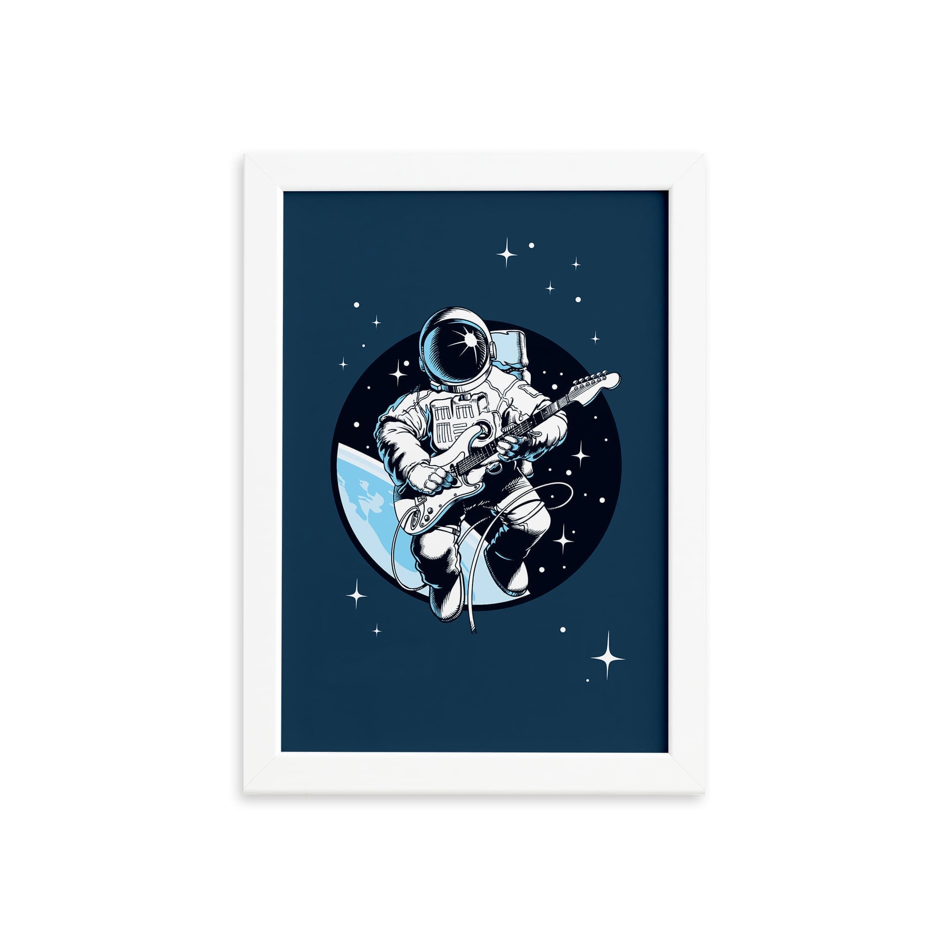 Quadro Astronauta Guitarrista Moldura Branca 33x43cm