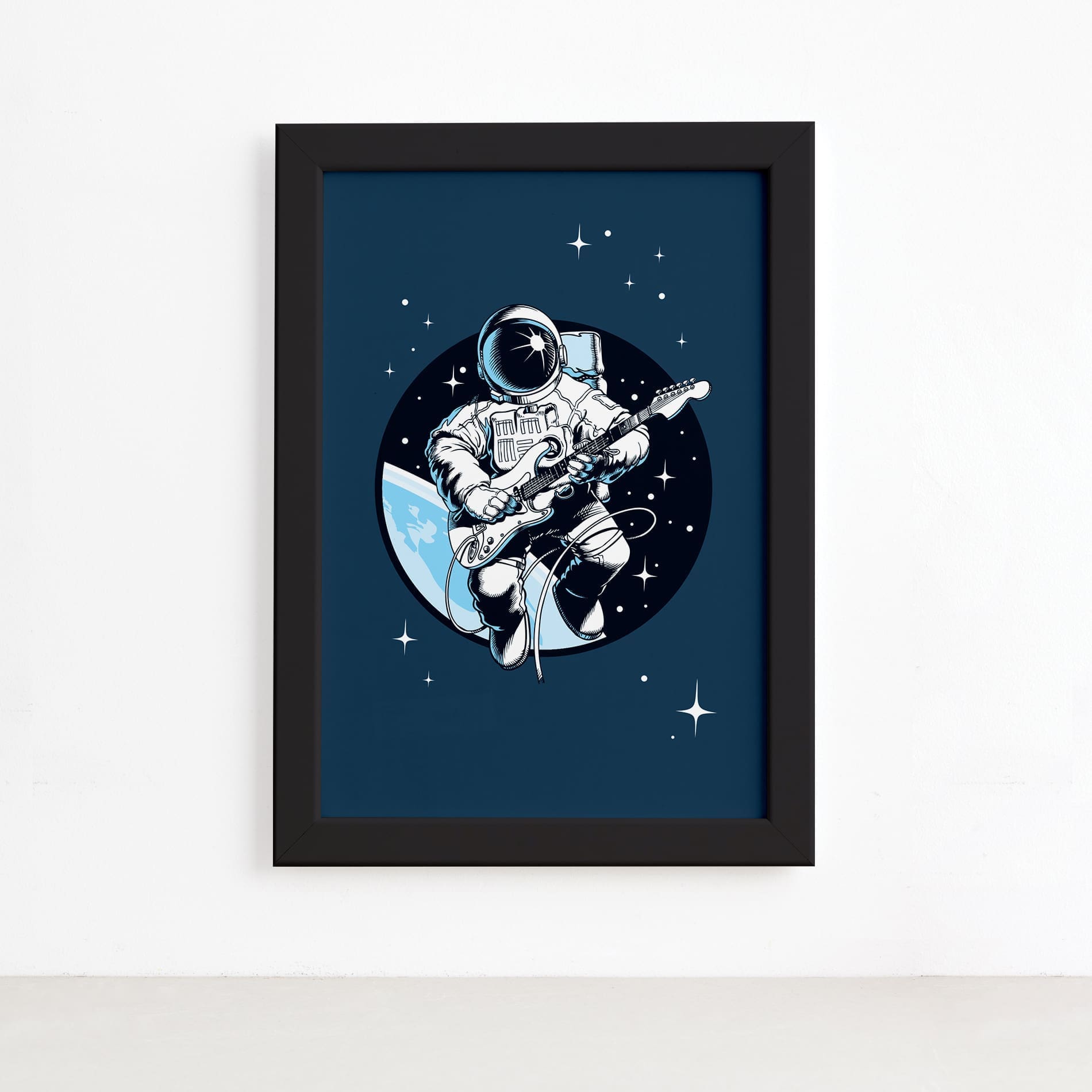 Quadro Astronauta Guitarrista Moldura Preta 22x32cm