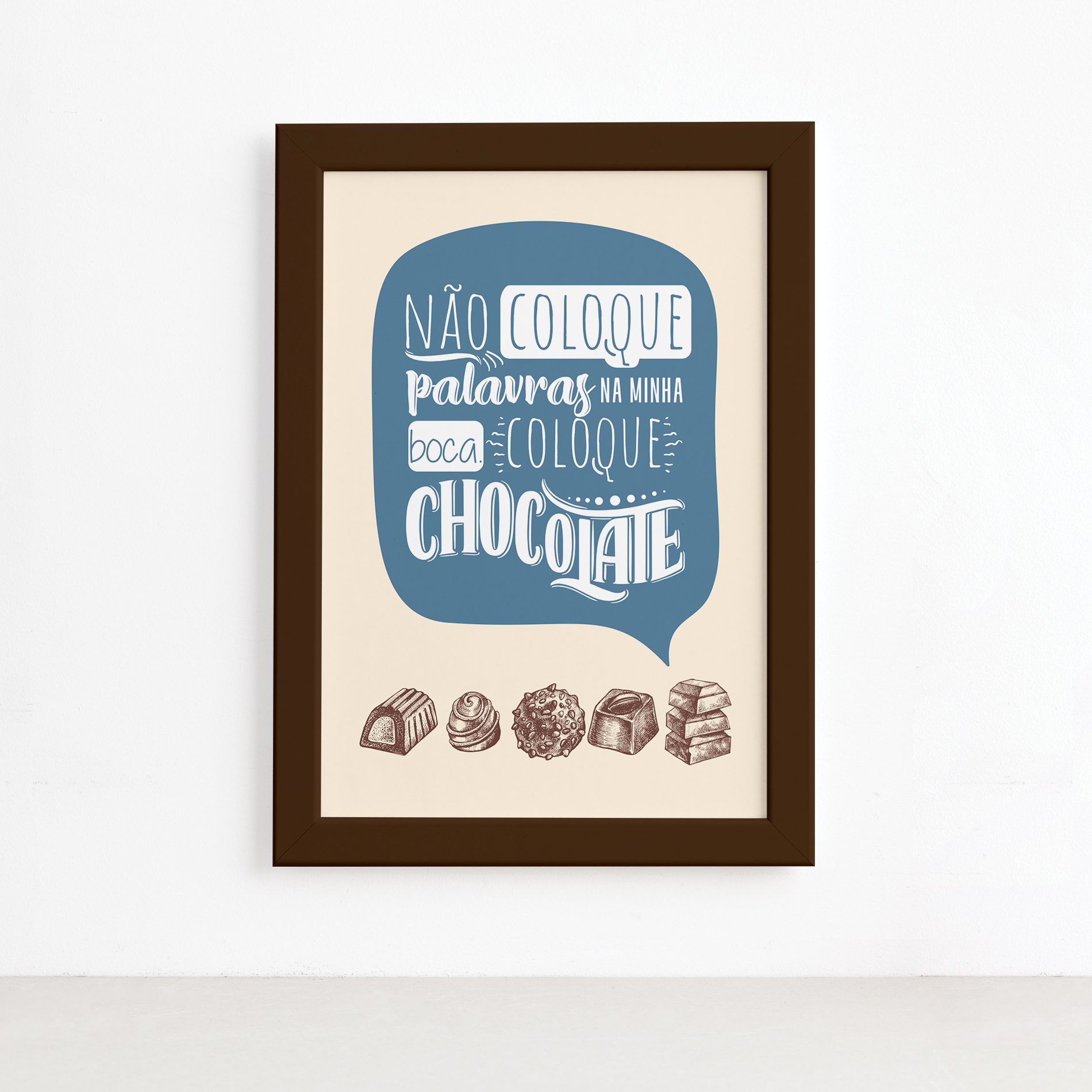 Quadro Cozinha Chocolate Frase Boca Moldura Marrom 22x32cm