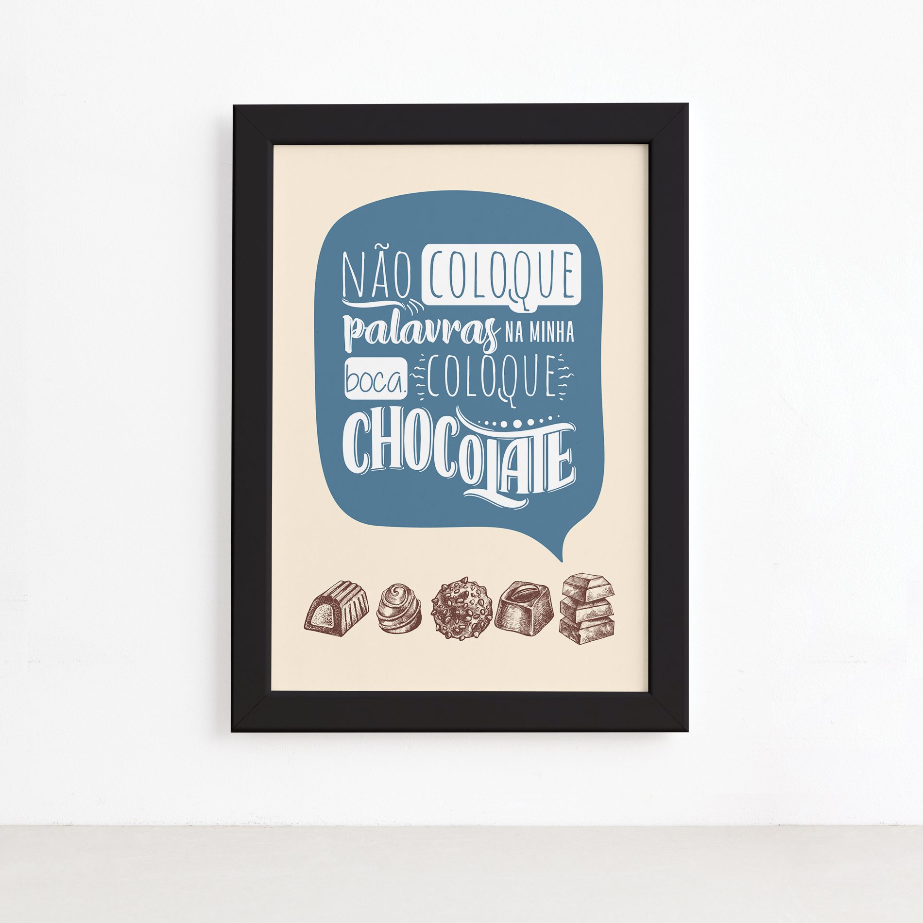 Quadro Cozinha Chocolate Frase Boca Moldura Preta 22x32cm