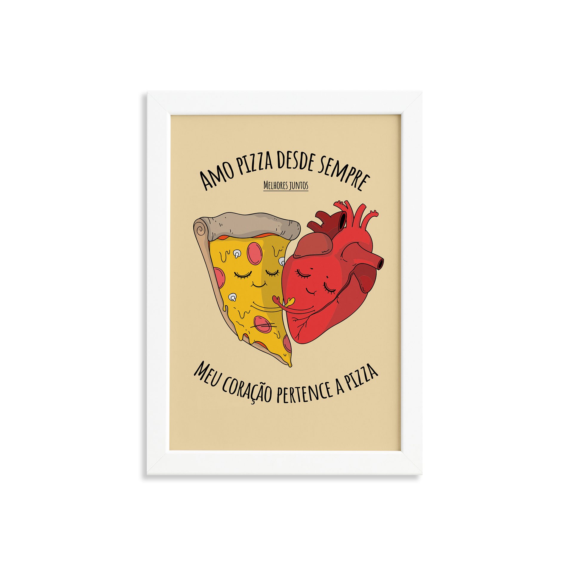 Quadro Cozinha Frase Amo Pizza Moldura Branca 33x43cm