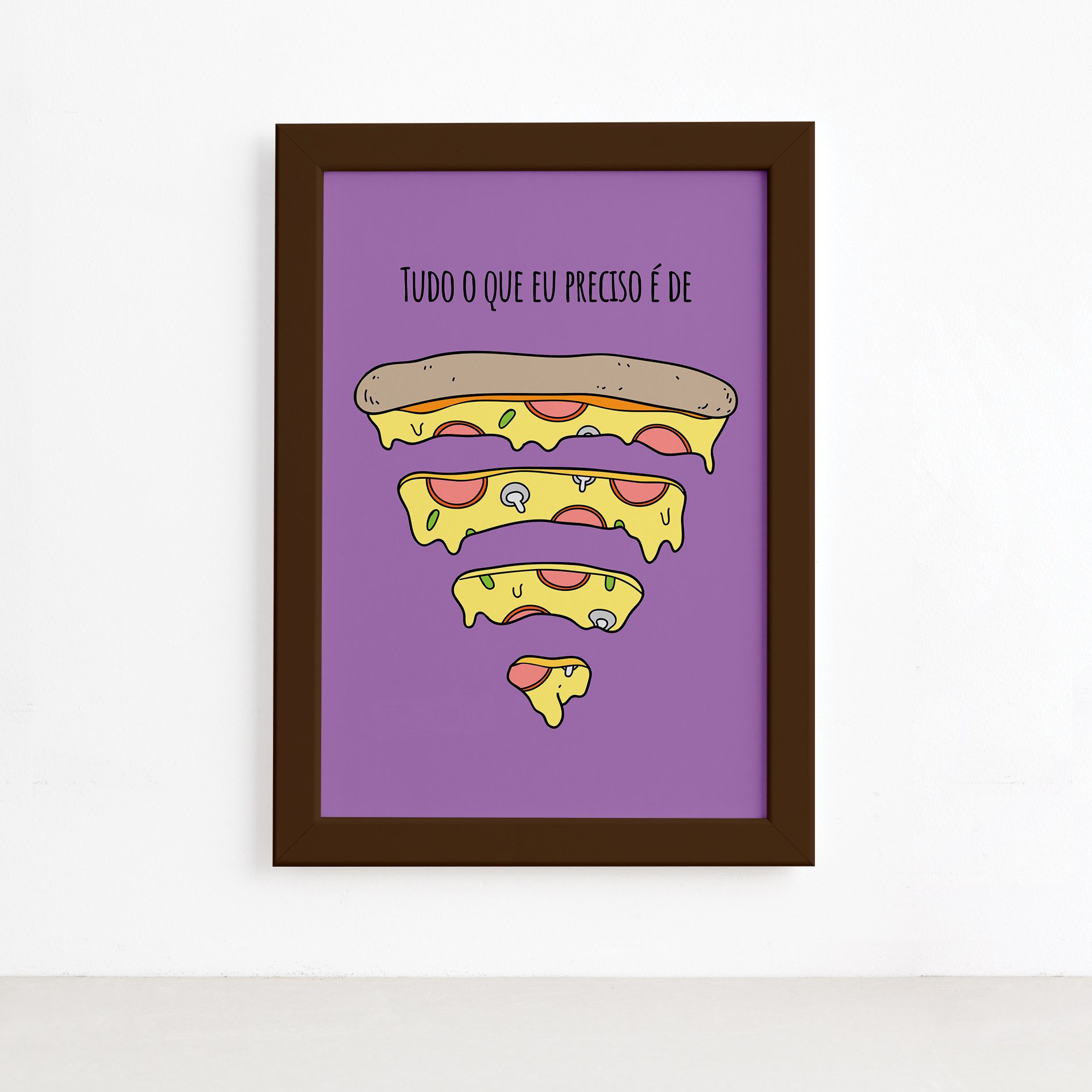 Quadro Cozinha Pizza Frase Preciso Moldura Marrom 22x32cm