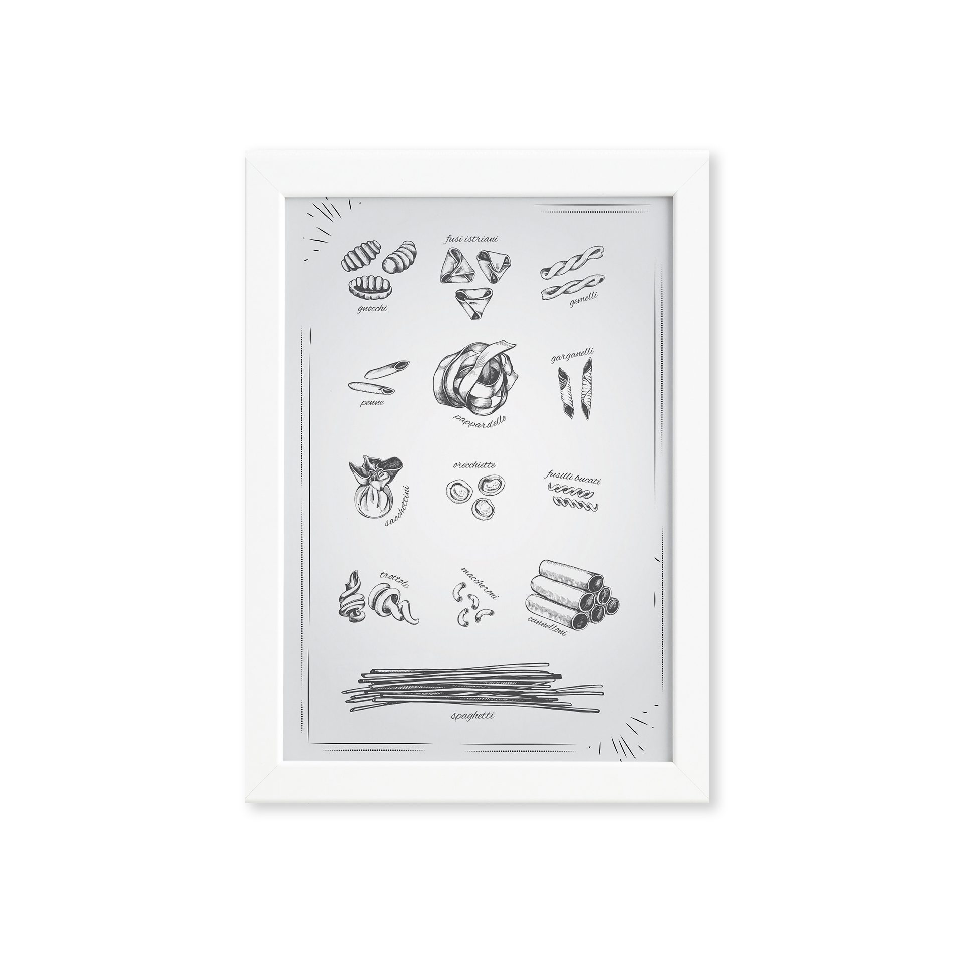 Quadro Cozinha Tipos Massas Italianas Moldura Branca 33x43cm