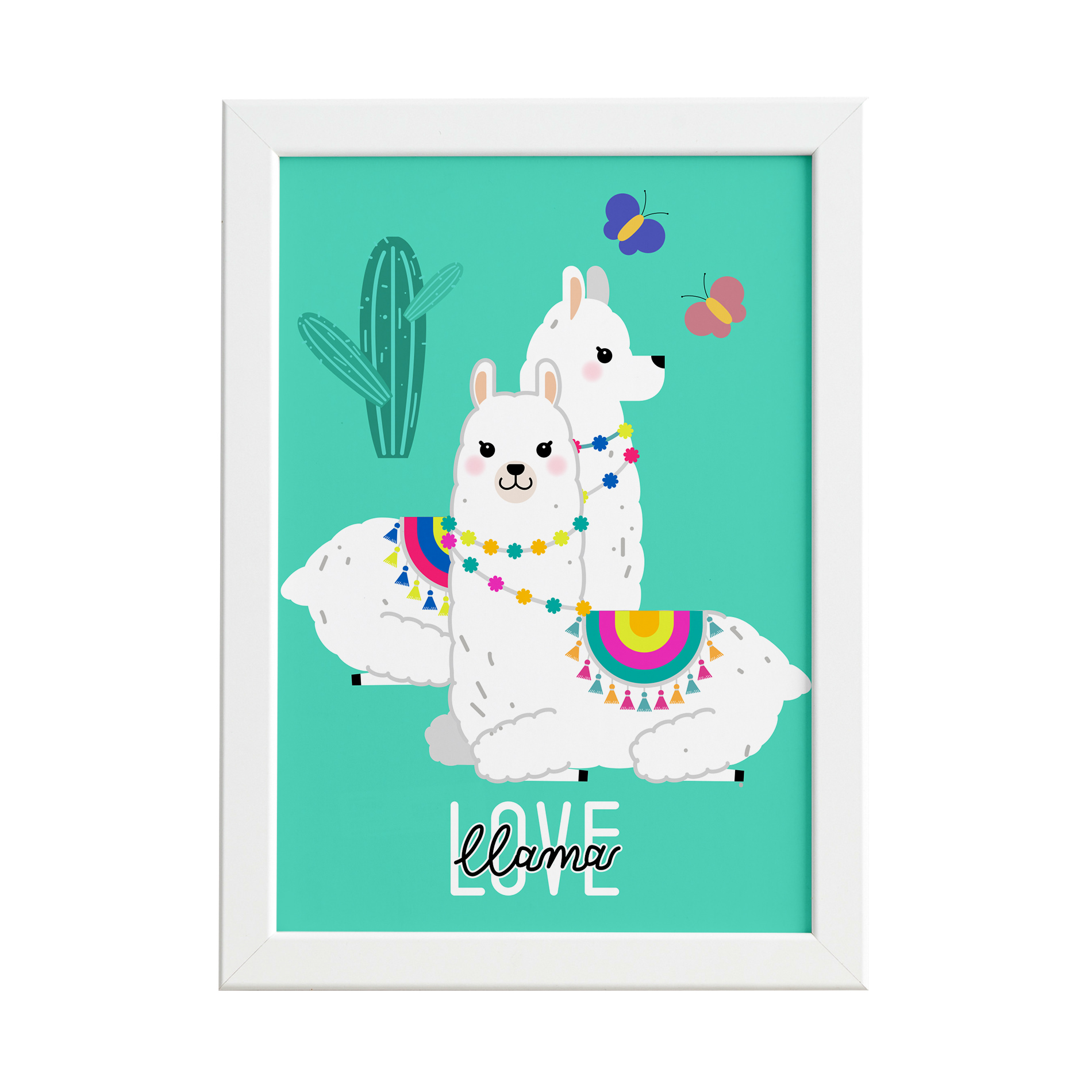 Tudo o que você precisa saber sobre Quadro Decorativo Lhama Love Ciano 22x32cm Mold. Branca