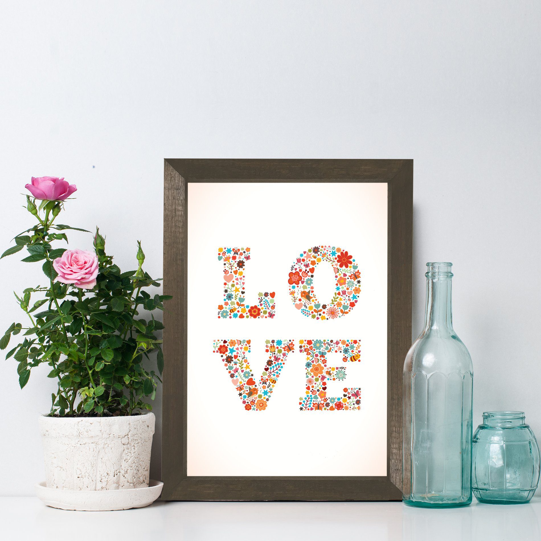 Quadro Decorativo Love Flores Moldura Marrom 33x43cm