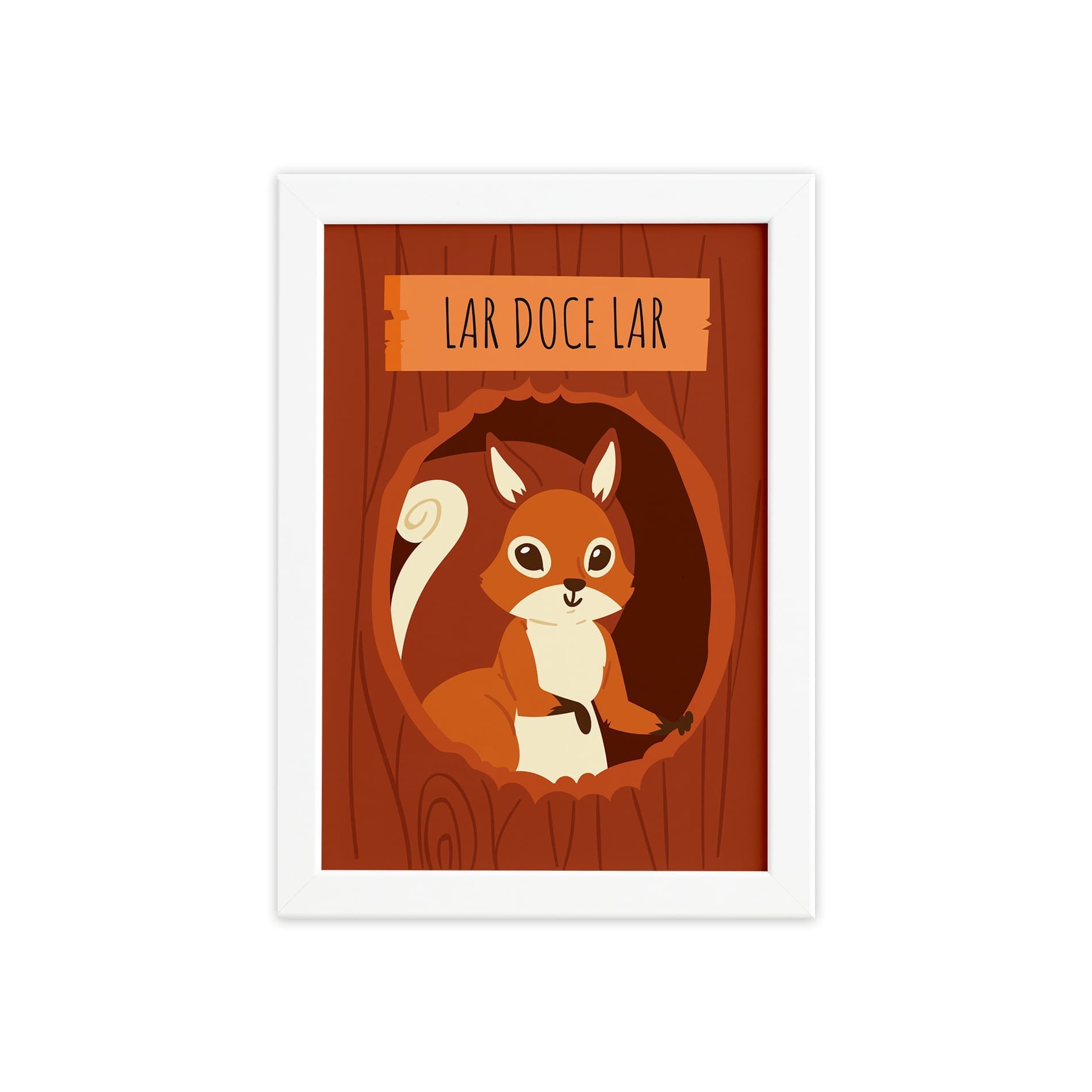 Quadro Esquilo Infantil Lar Doce Lar Moldura Branca 33x43cm