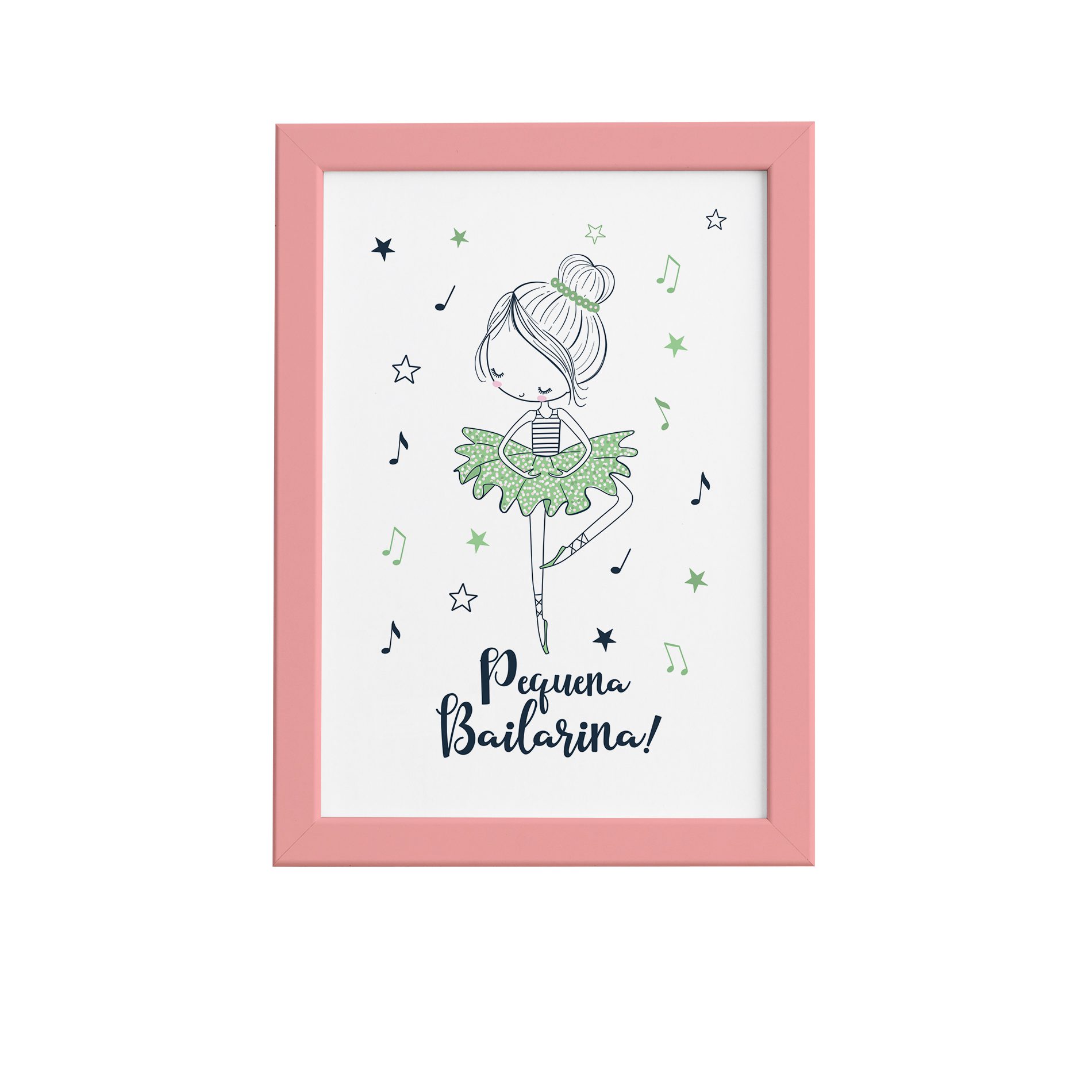 Quadro Frase Pequena Bailarina Moldura Rosa 22x32cm