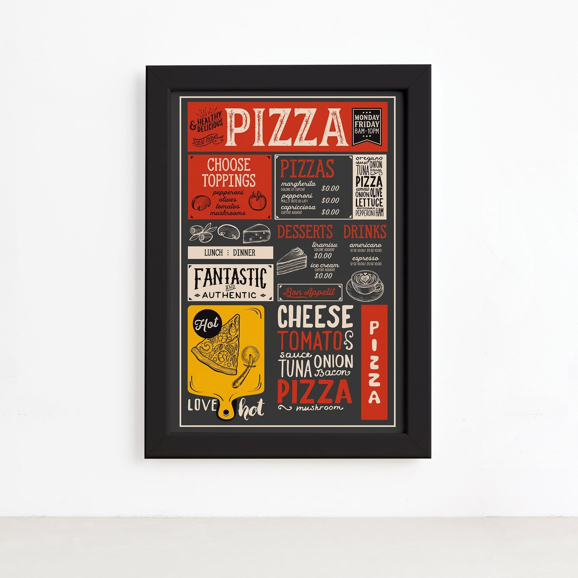 Quadro Frase Pizza Diversas Moldura Preta 22x32cm