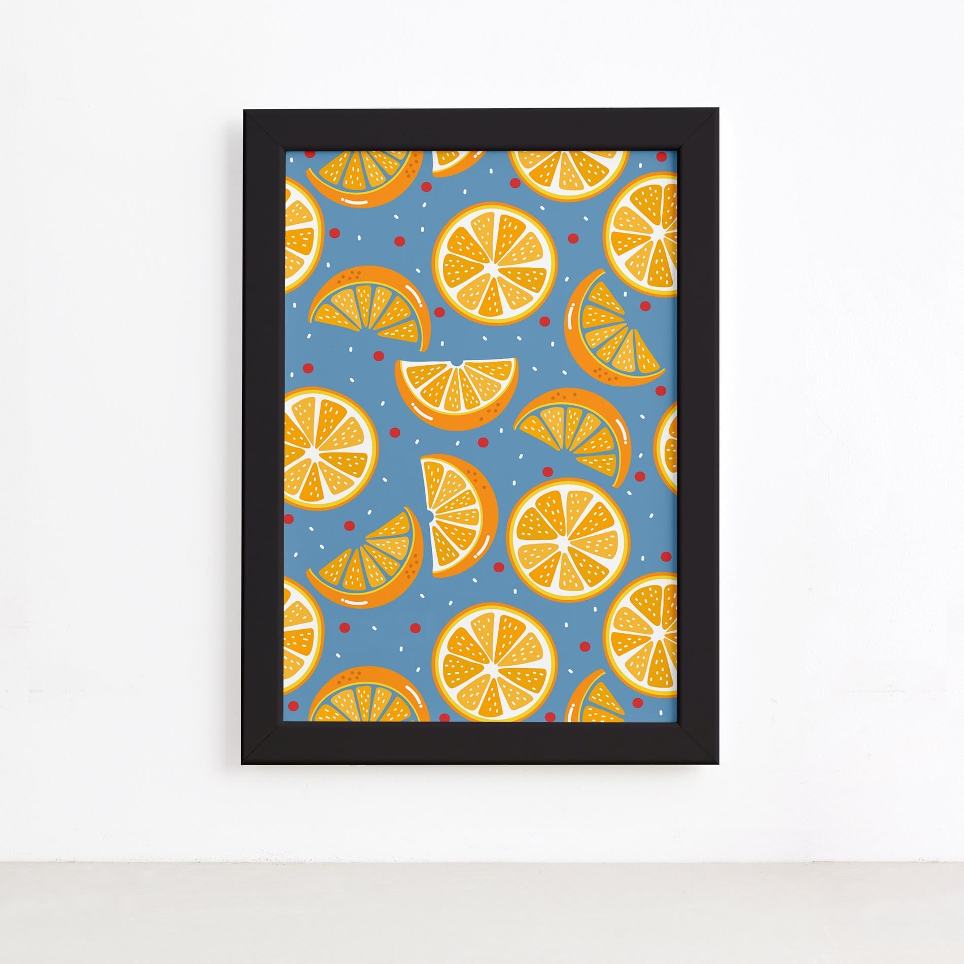 Quadro Frutas Coloridas Laranjas Moldura Preta 22x32cm