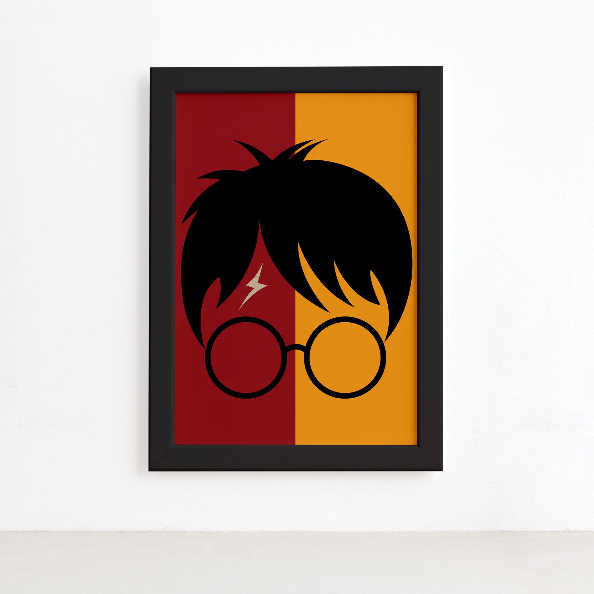 Quadro Harry Infantil Óculos Bruxinho Moldura Preta 22x32cm