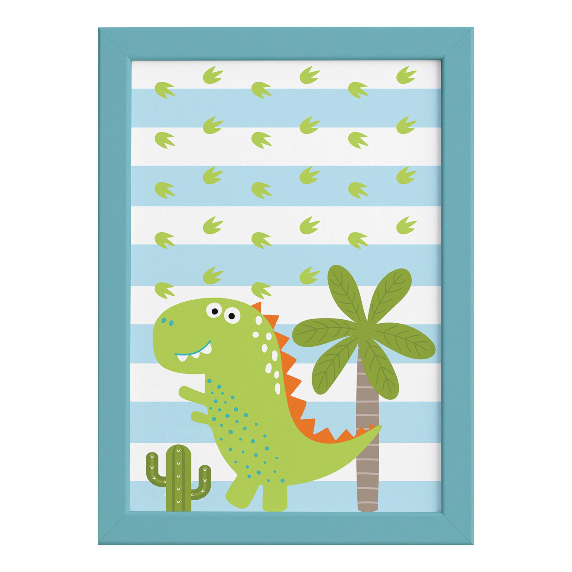 Quadro Decorativo Infantil Dinossauro Baby 2 Verde com Moldura Azul