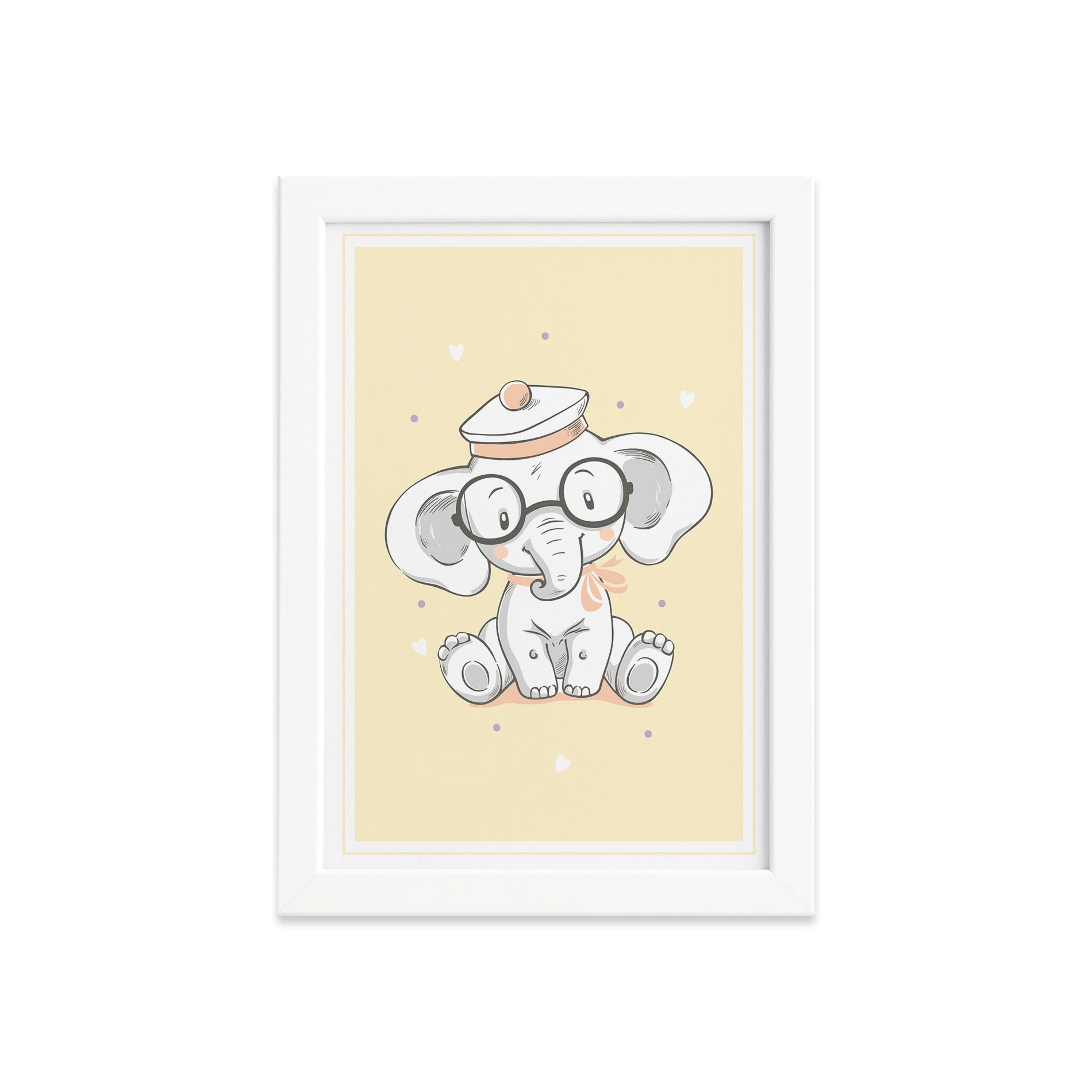 Quadro Infantil Elefante Bebê de Óculos Moldura Branca 22×32