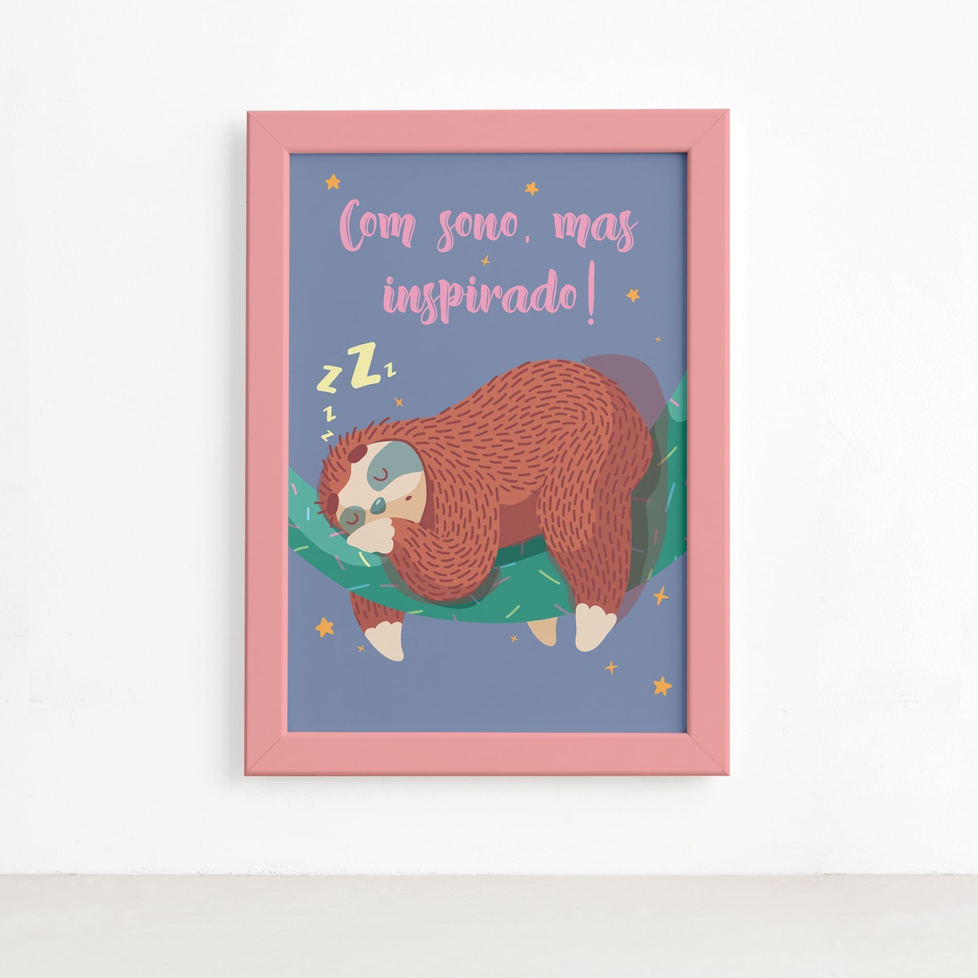 Quadro Infantil Preguiça Frase Sono Moldura Rosa 22x32cm