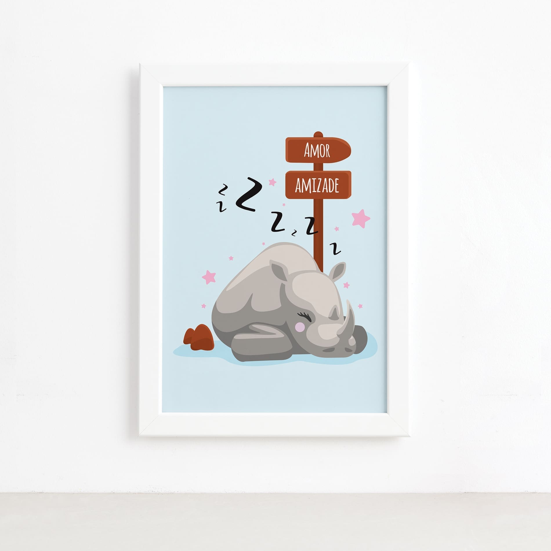 Quadro Infantil Rinoceronte Amor Moldura Branca 22x32cm