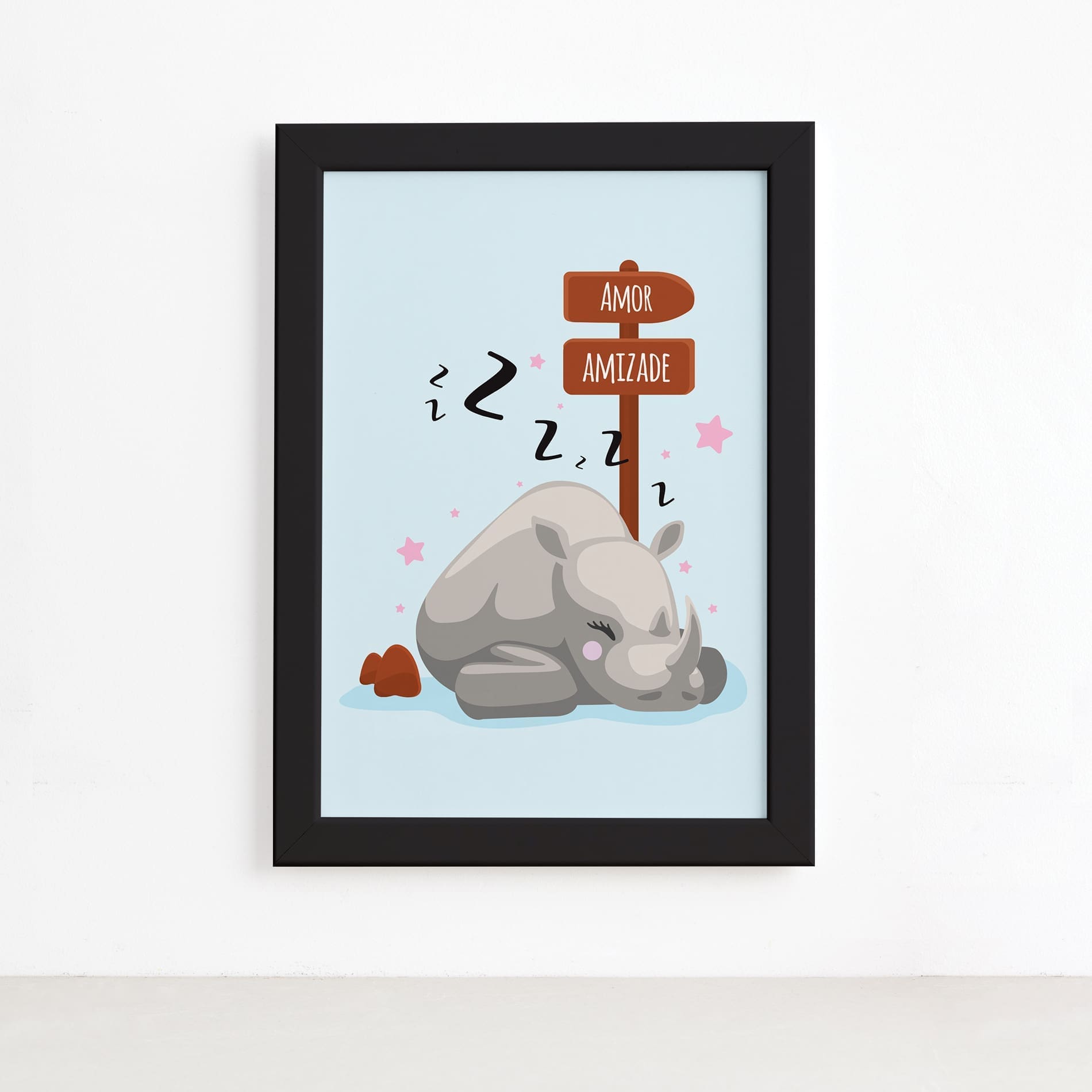 Quadro Infantil Rinoceronte Amor Moldura Preta 22x32cm