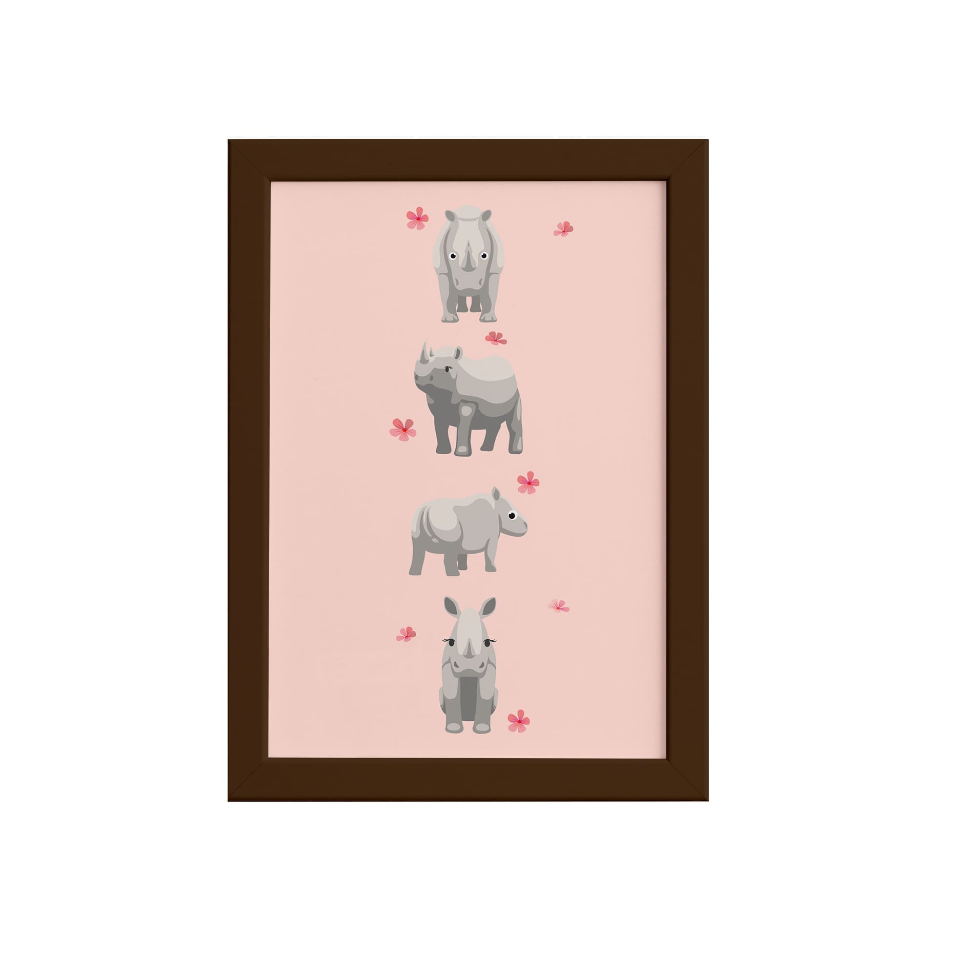 Quadro Infantil Rinoceronte Quarteto Moldura Marrom 33x43cm