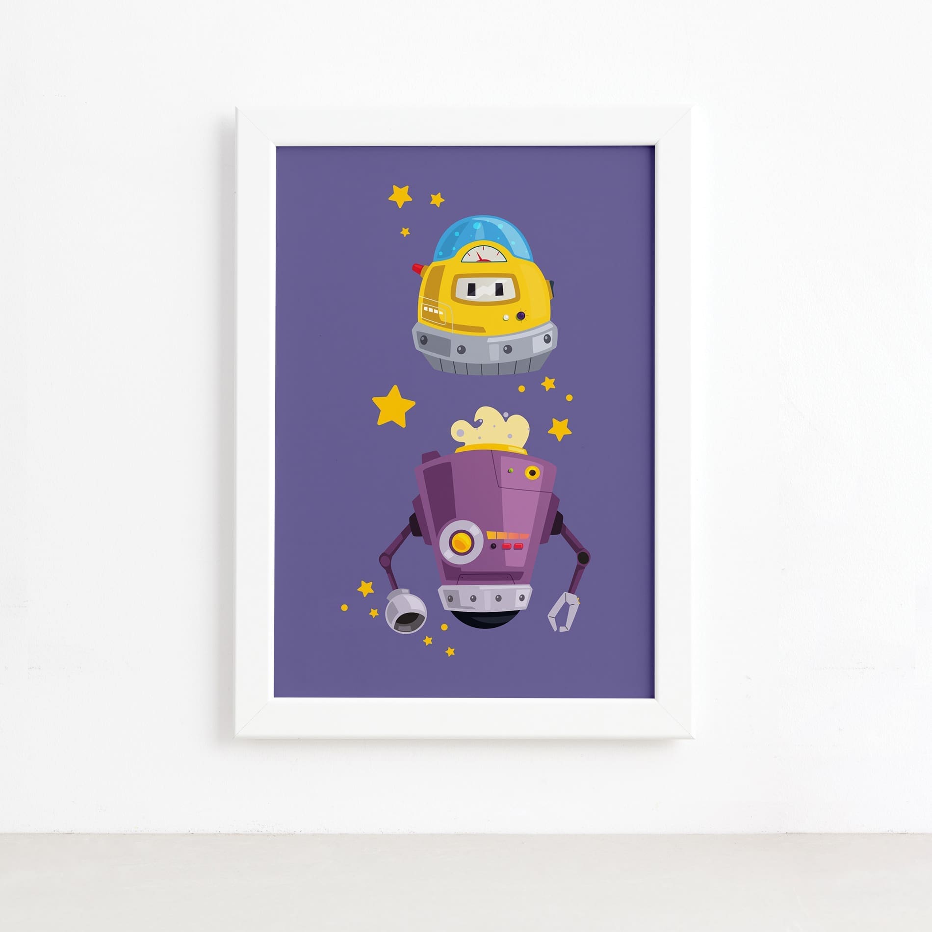 Quadro Infantil Robôs Amigos Moldura Branca 22x32cm