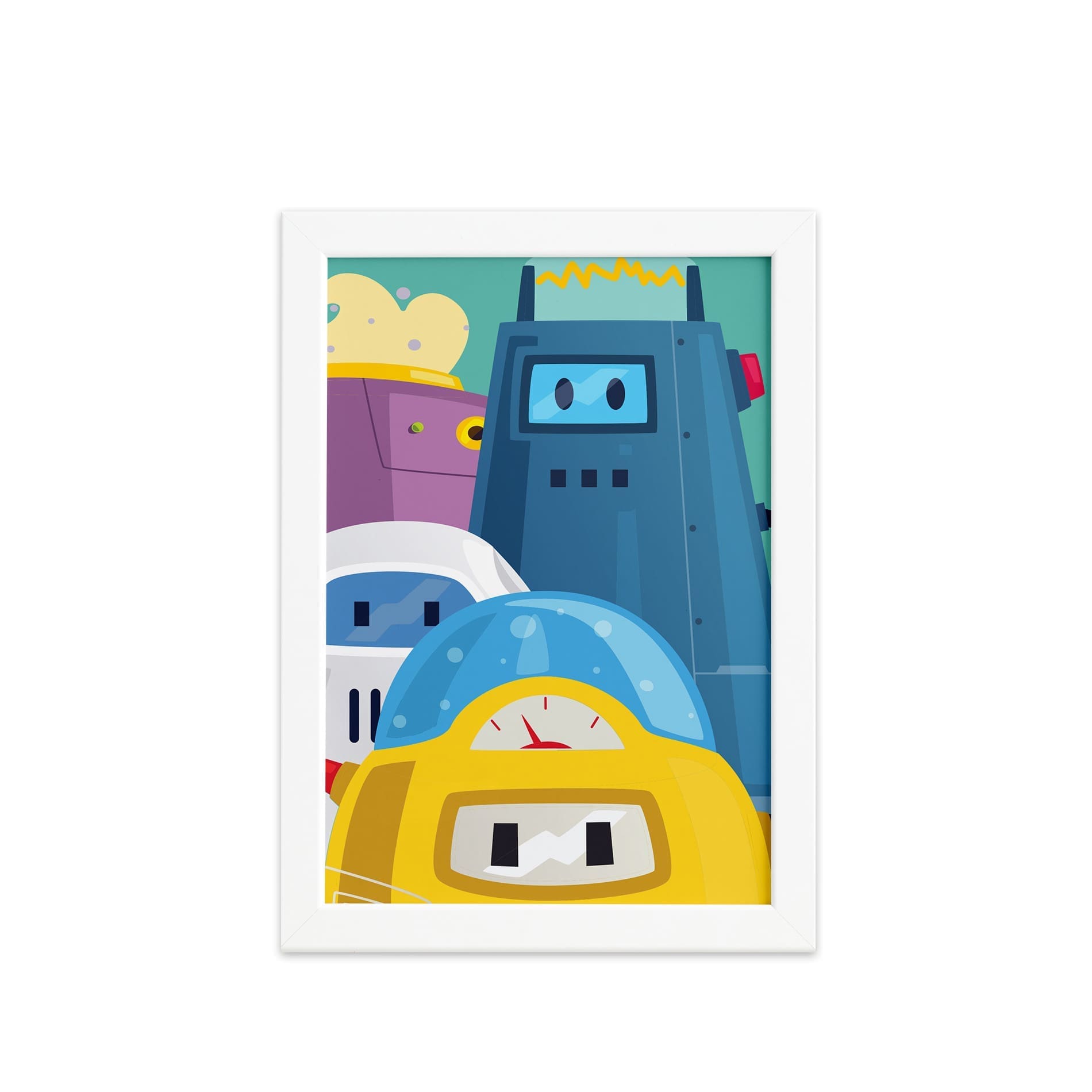 Quadro Infantil Robôs Moldura Branca 33x43cm