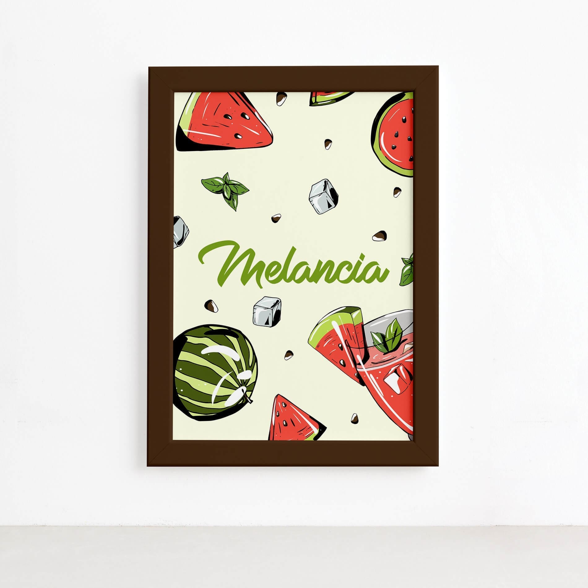 Quadro Melancia Decorativo Frutas Moldura Marrom 22x32cm