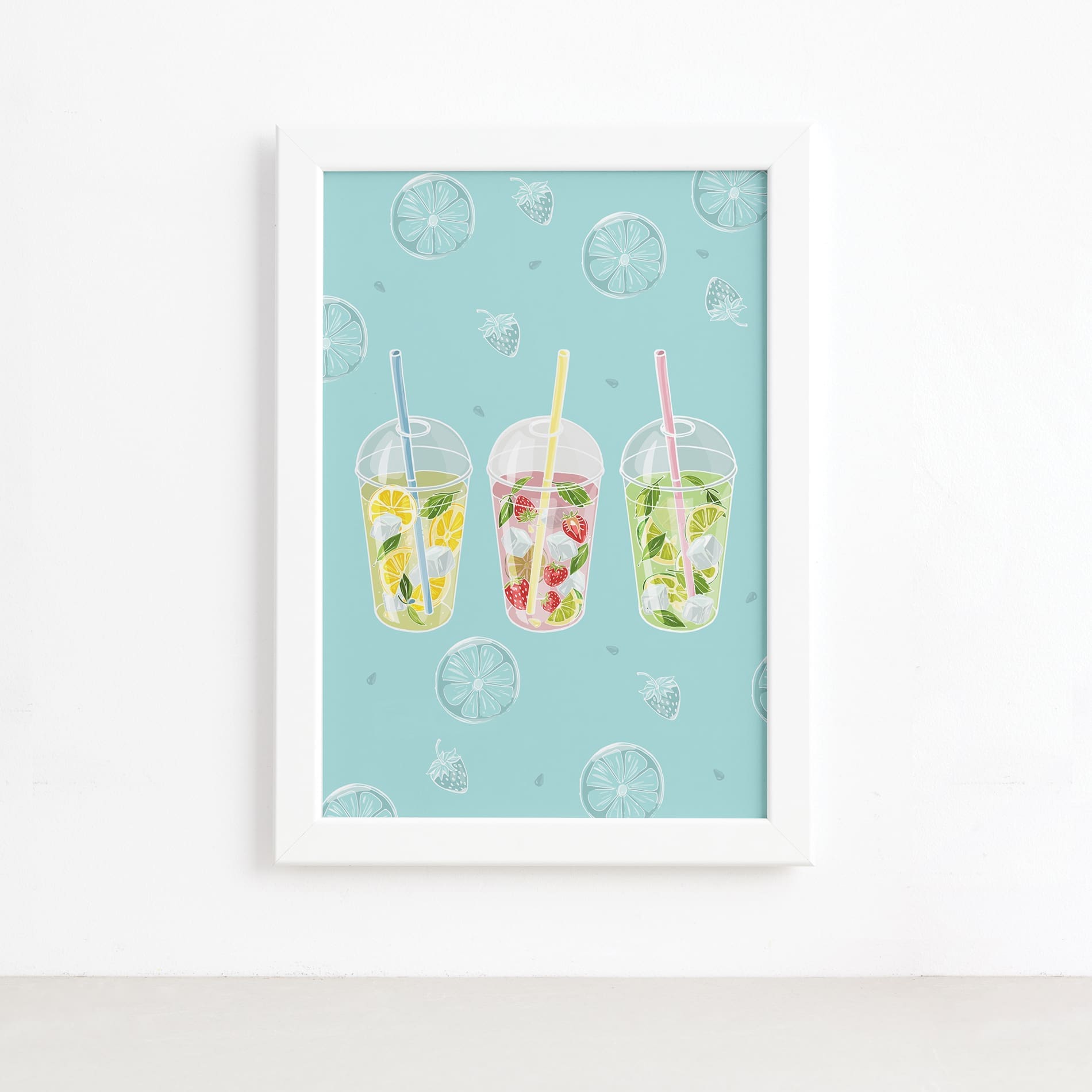 Quadro para Cozinha Bebidas Tropicais Moldura Branca 22x32cm