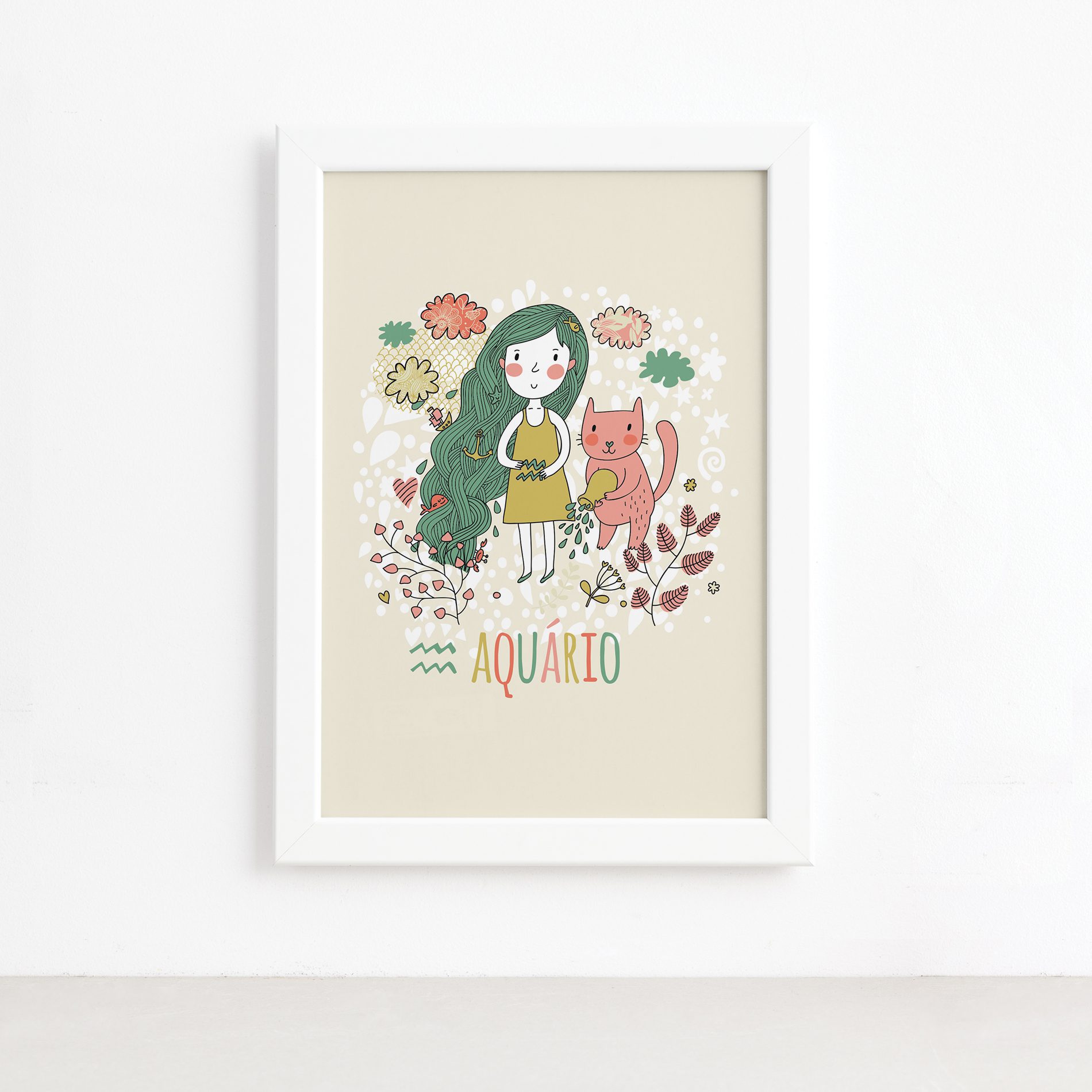 Quadro Signo Aquário Moldura Branca 22x32cm