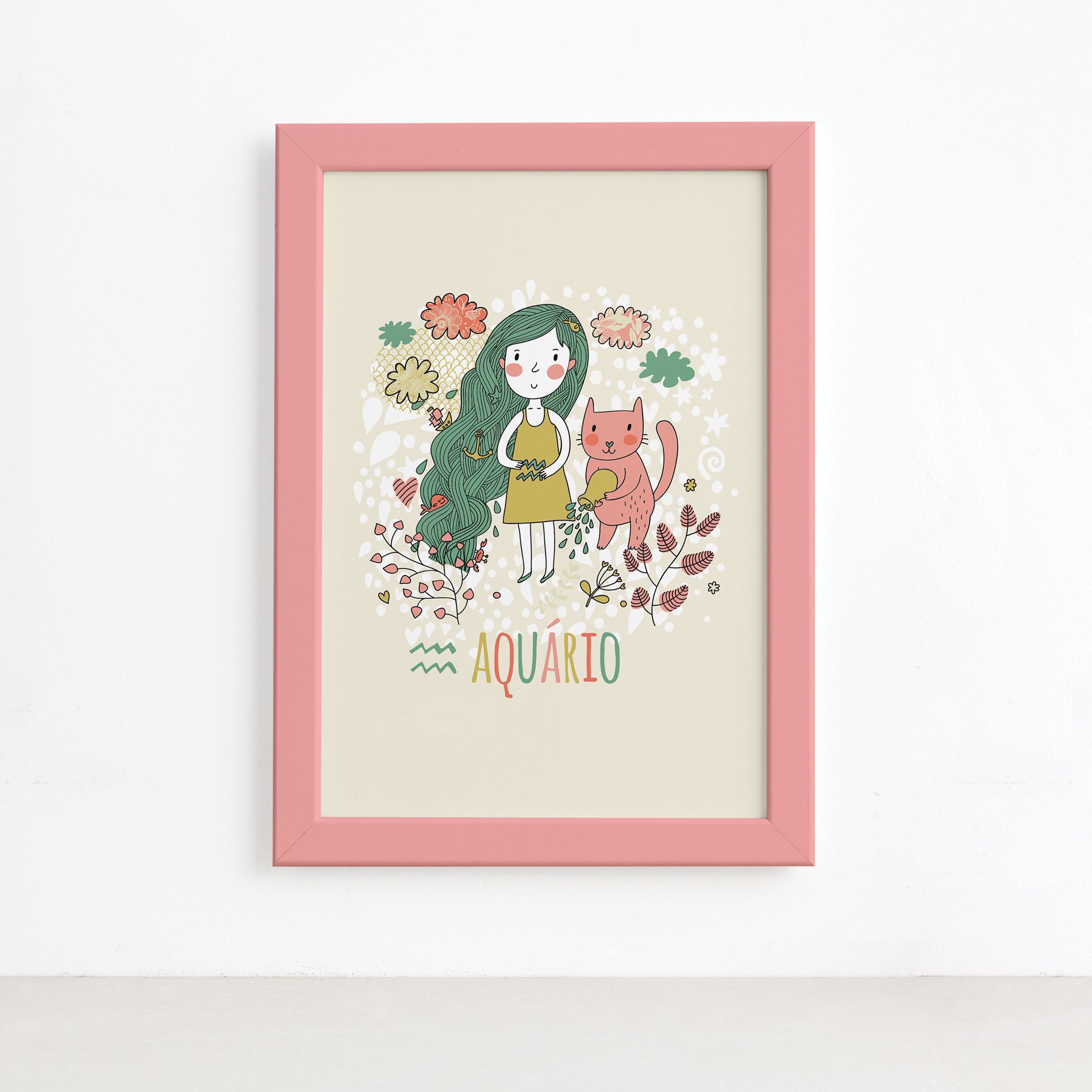Quadro Signo Aquário Moldura Rosa 22x32cm
