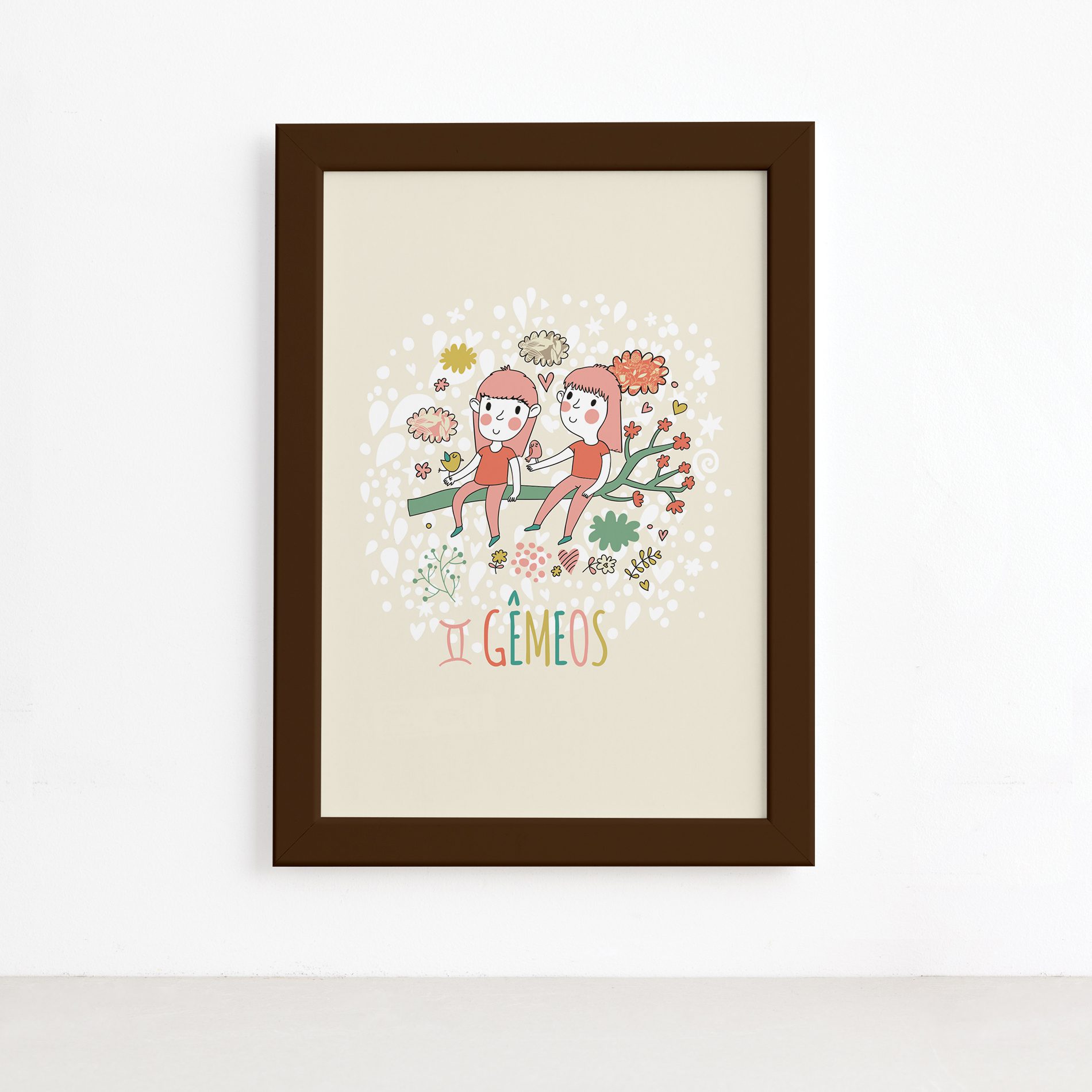 Quadro Signo Gêmeos Moldura Marrom 22x32cm