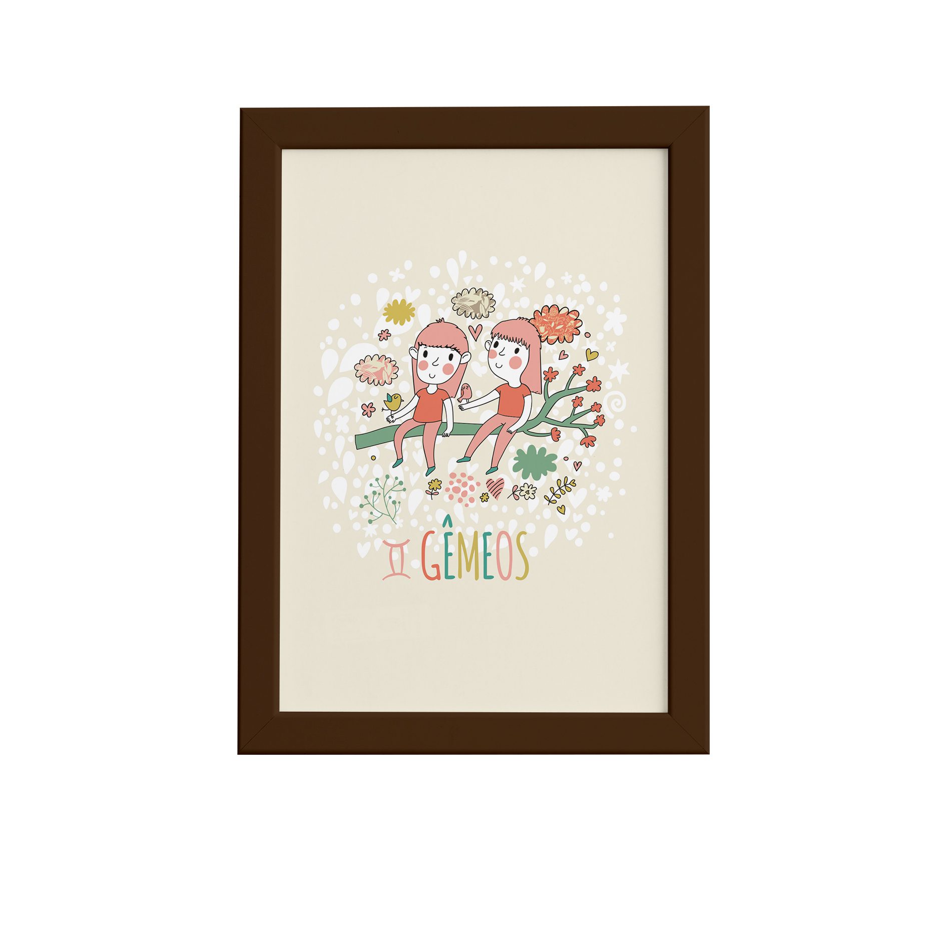 Quadro Signo Gêmeos Moldura Marrom 33x43cm